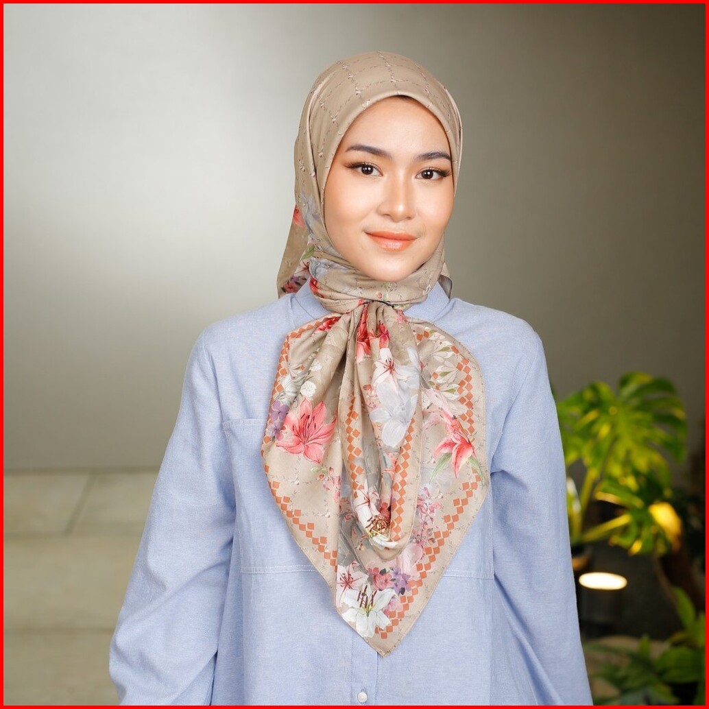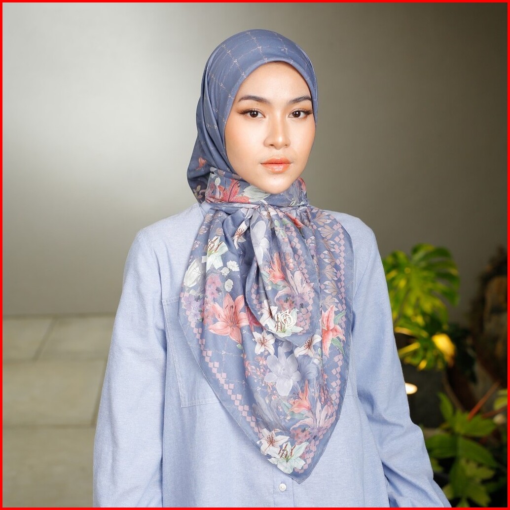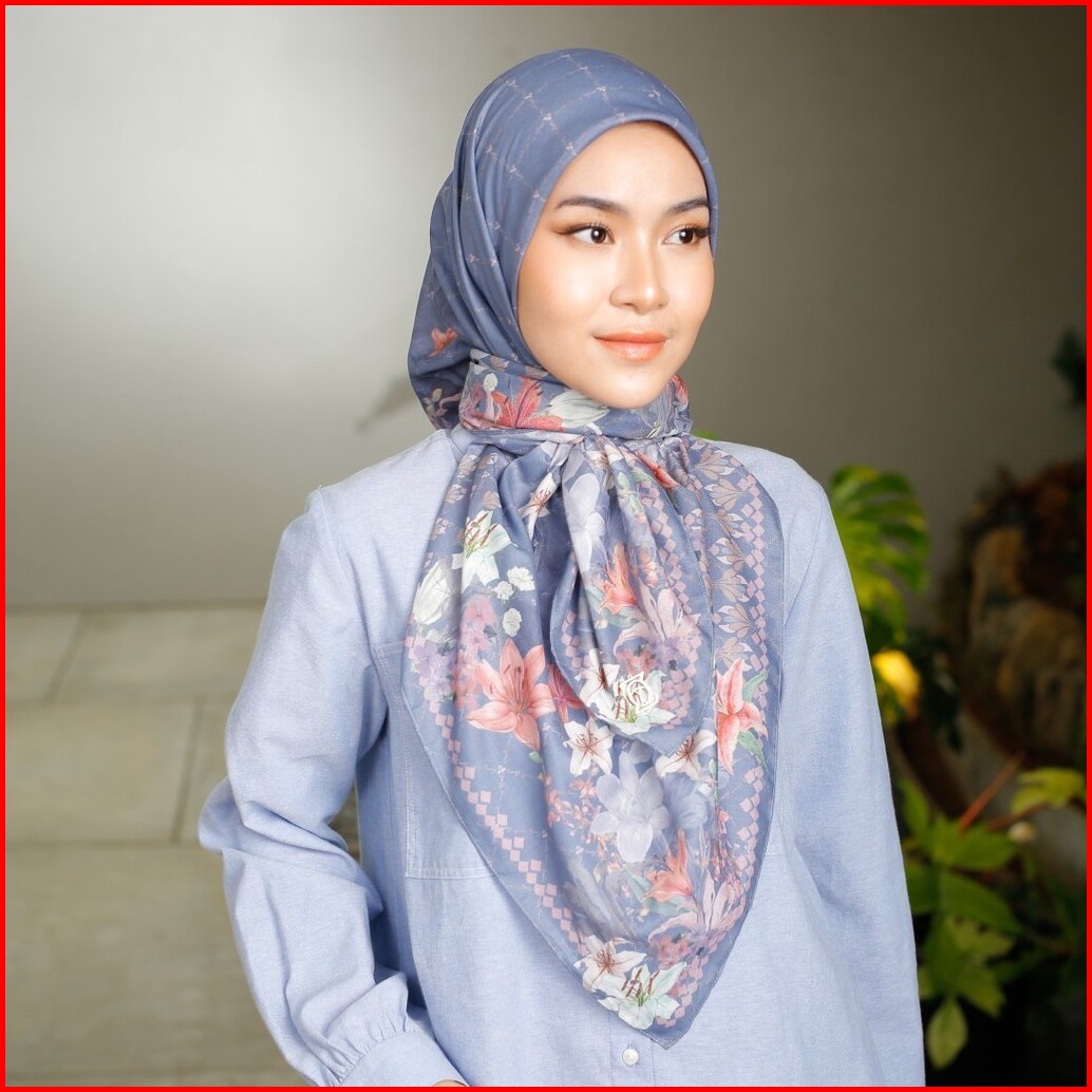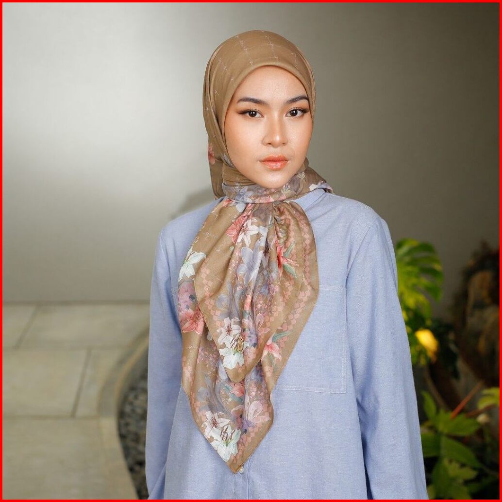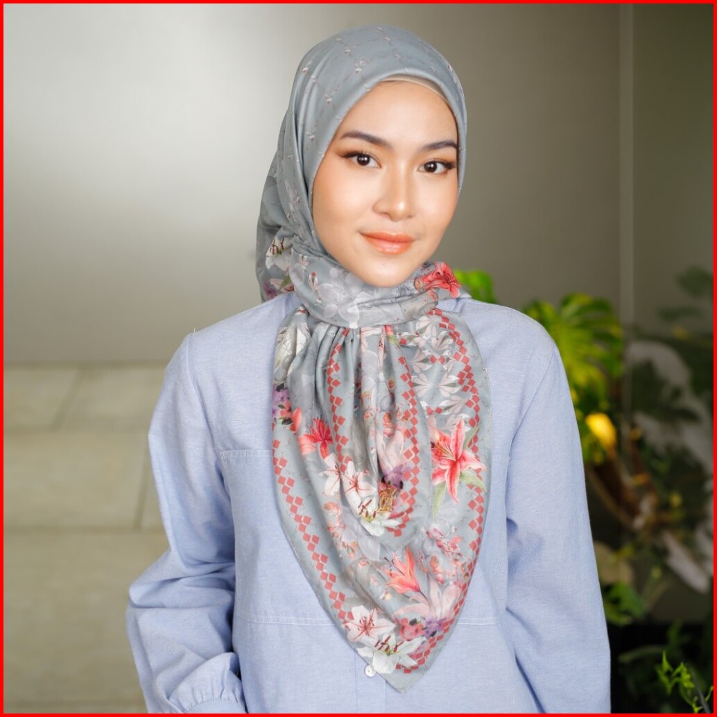 Zoya Xiana Scarf - Kerudung Hijab Segiempat Motif With Box - Bahan Voal - Ukuran 115x115