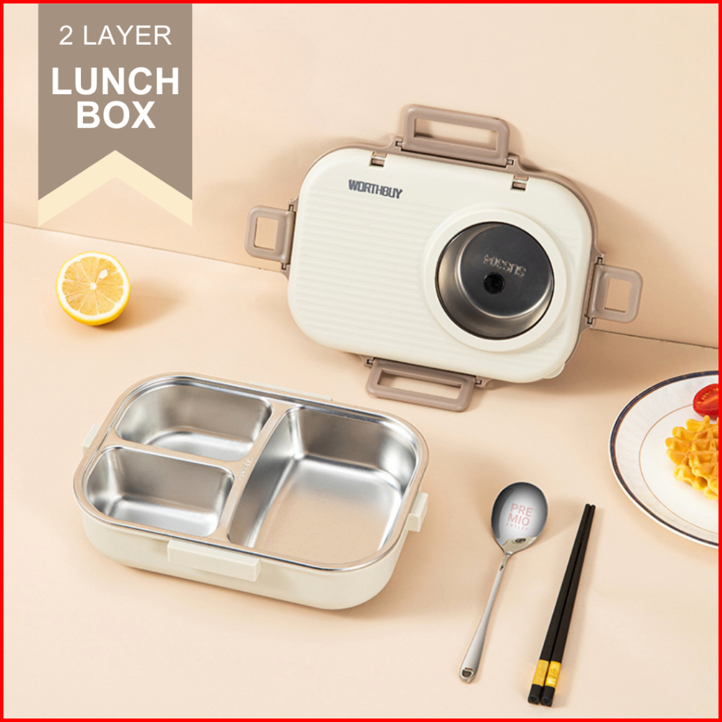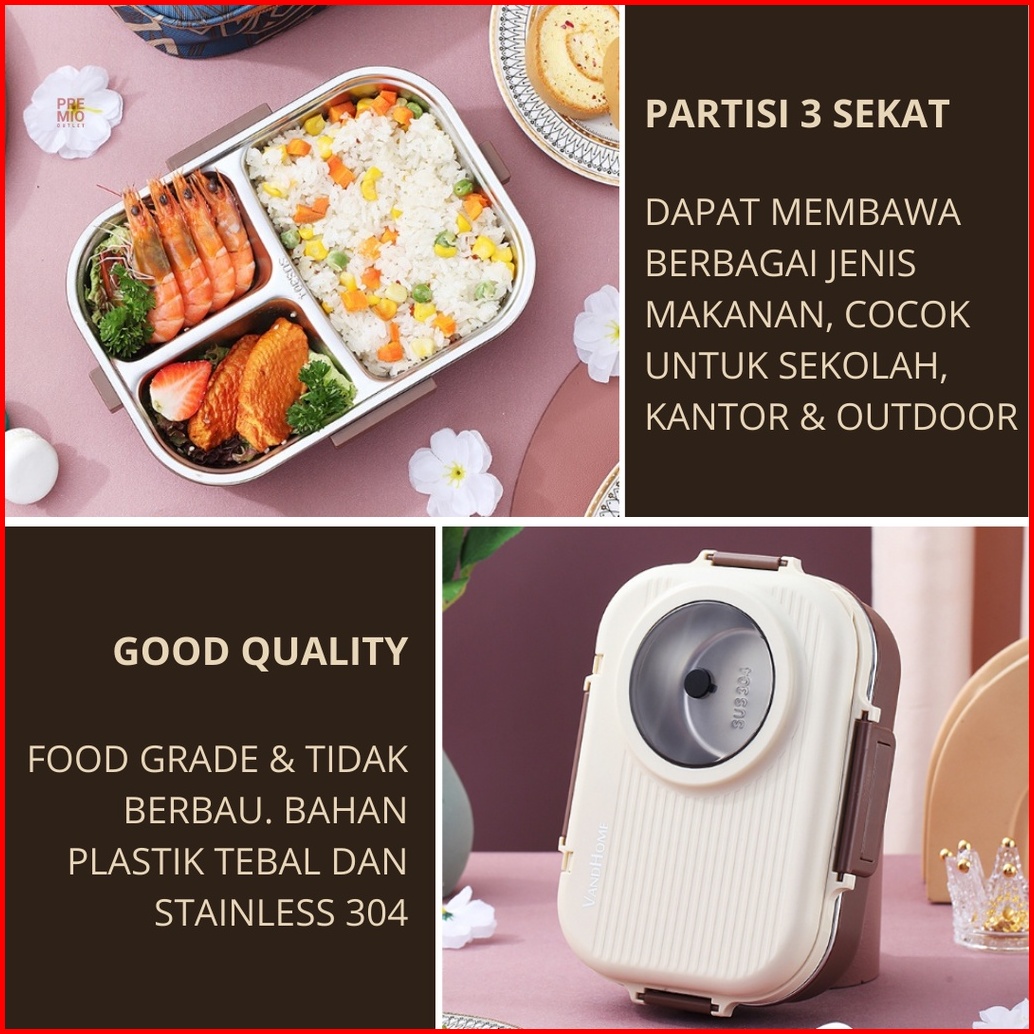 Premio Tempat Kotak Bekal Makan Bento Lunch Box Stainless Anti Tumpah