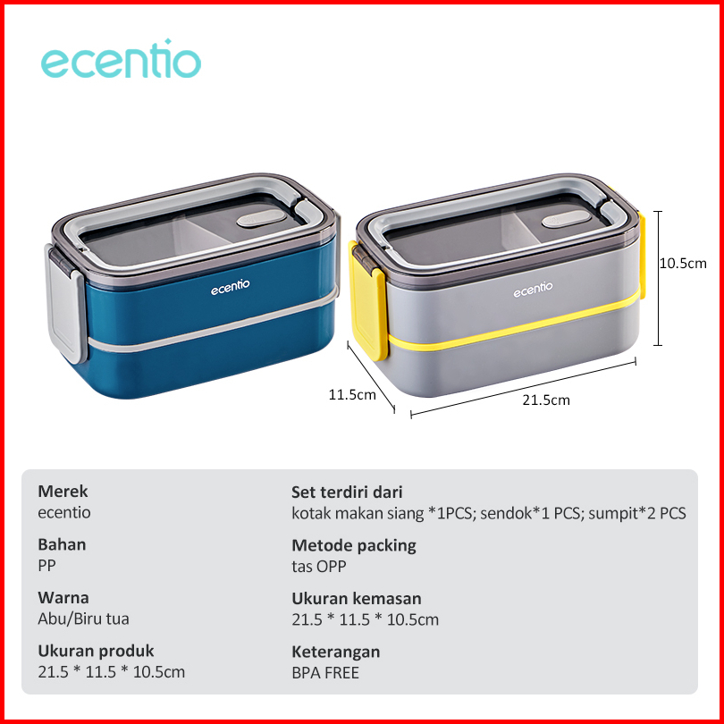 Ecentio Kotak Makan Bento Anti Tumpah 800ml Single-layer Lunch Box Kotak Bekal Tempat Makan