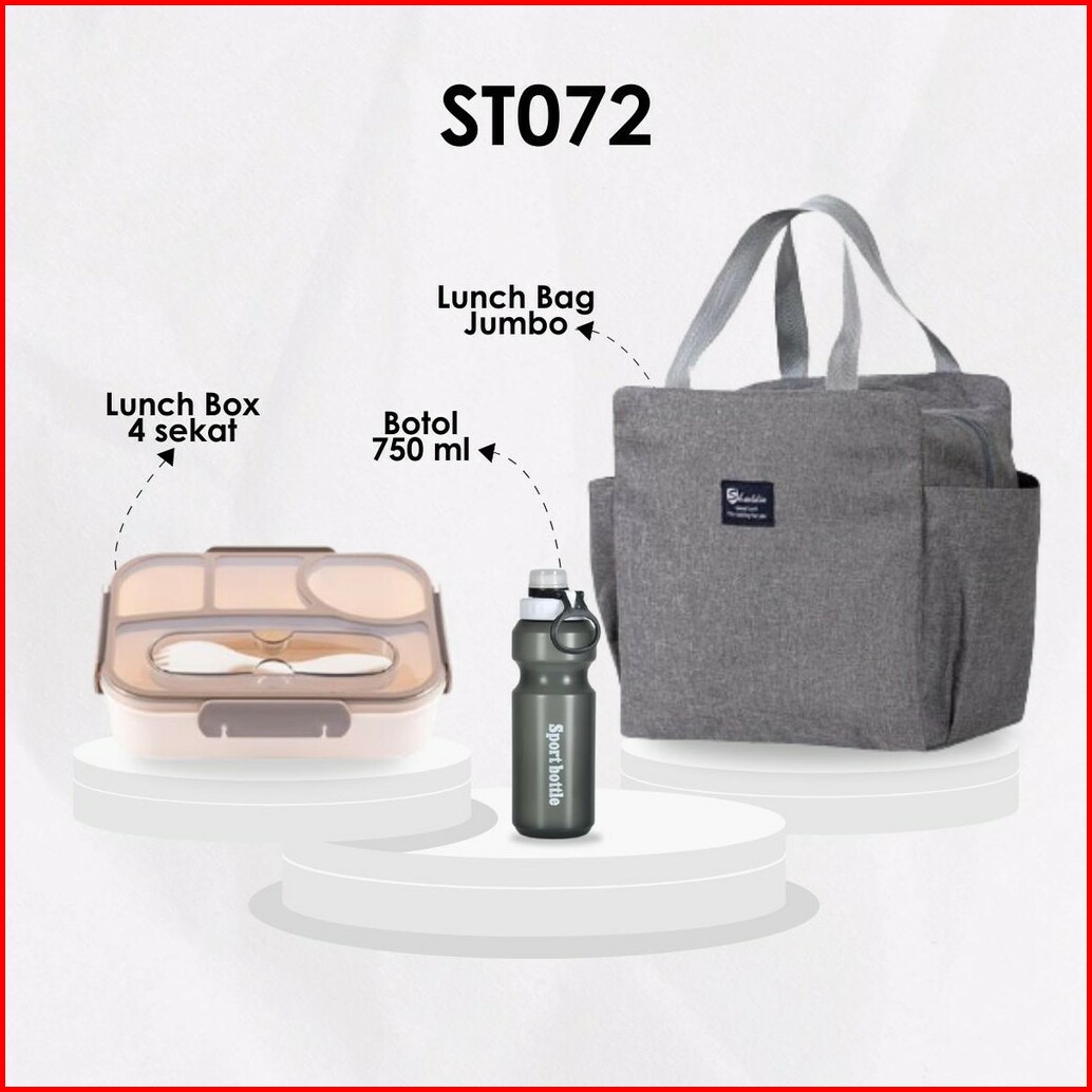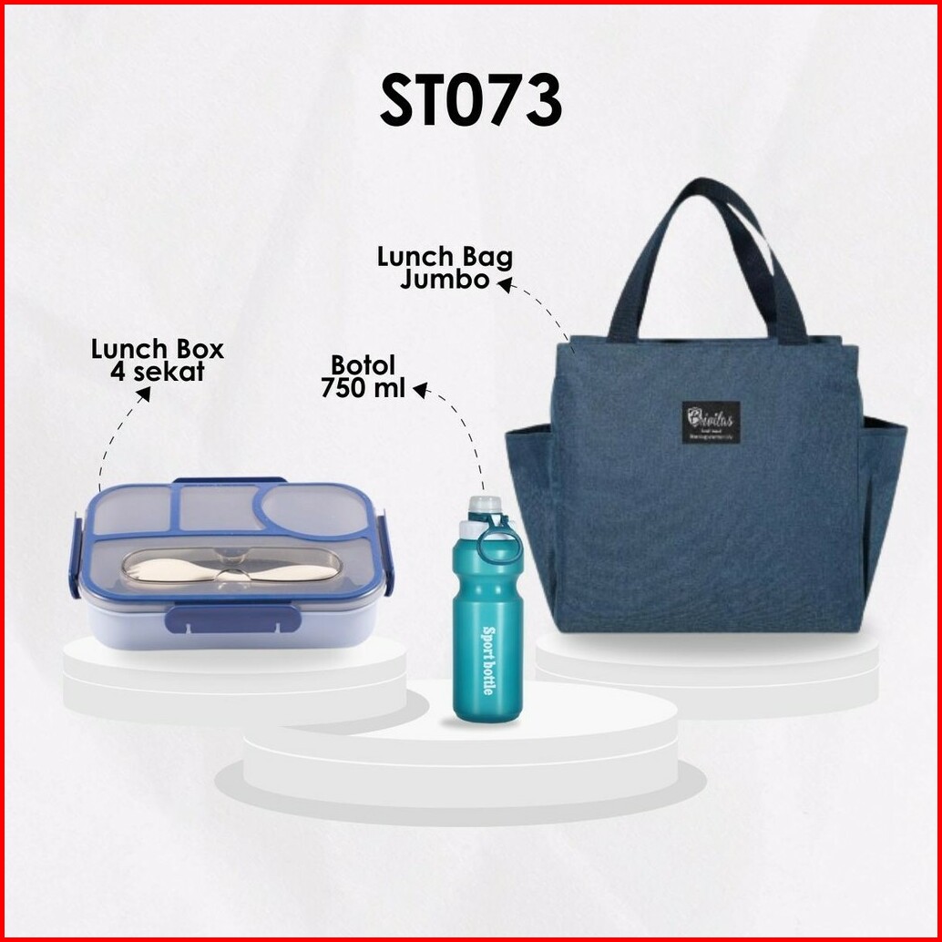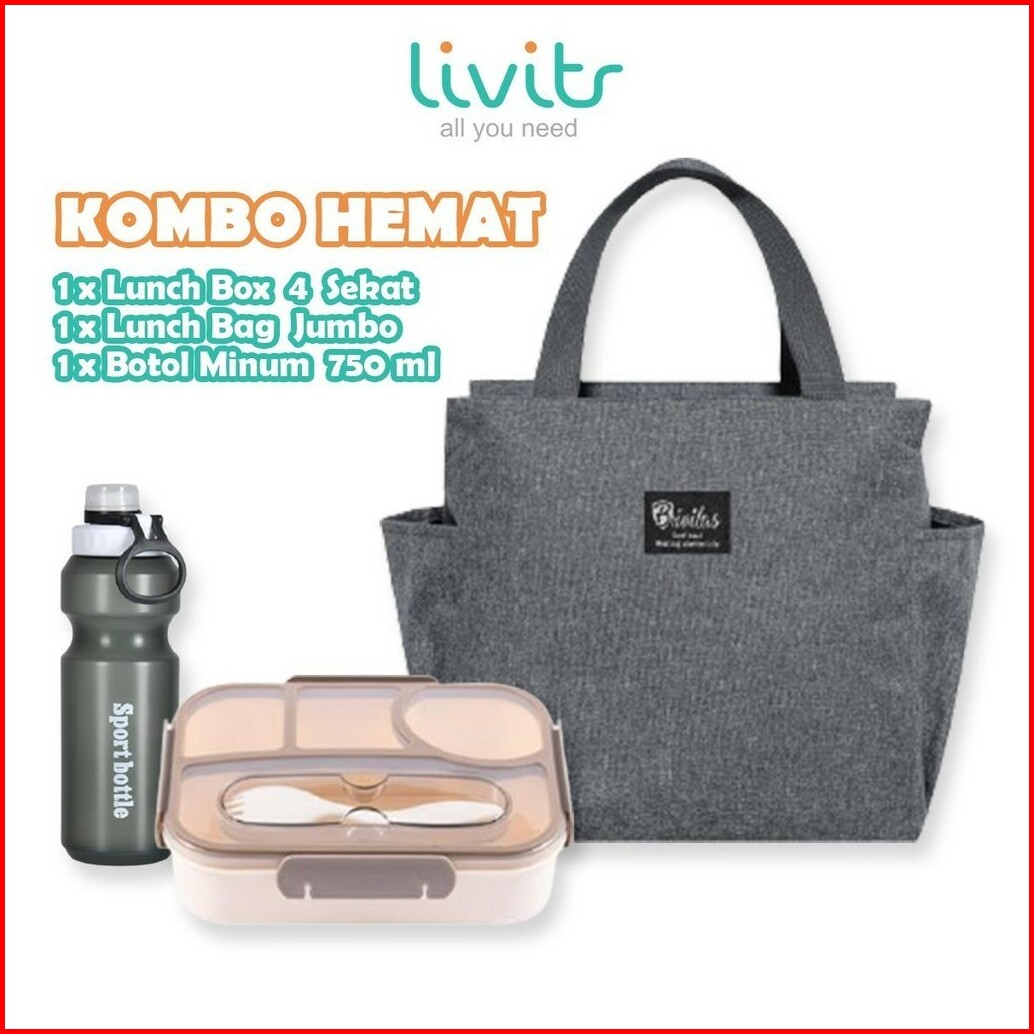 3 In 1 Lunch Box Set Beli Kotak Bekal 3 4 Sekat Gratis Botol Minum 750 Ml Tas Bekal Jumbo