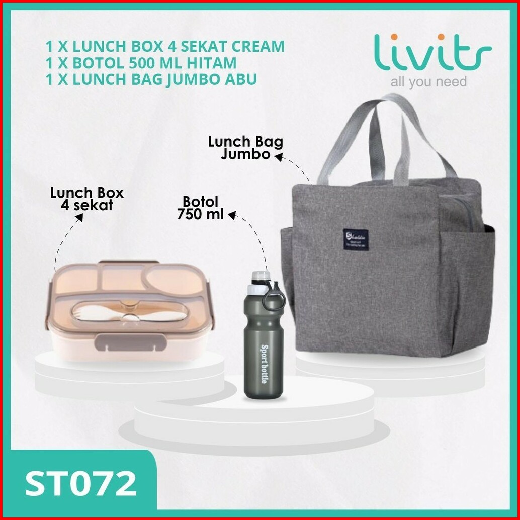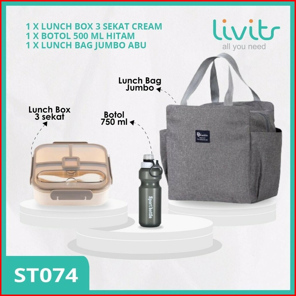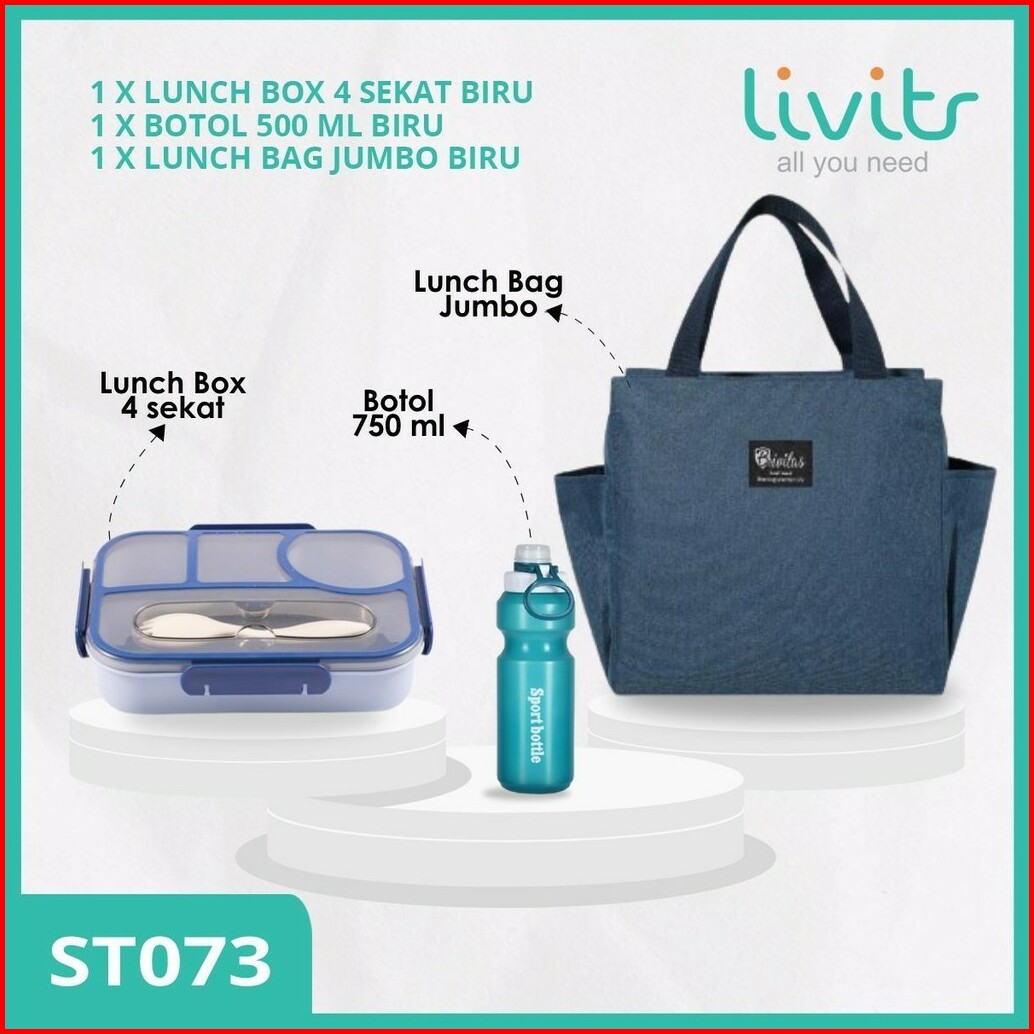 3 In 1 Lunch Box Set Beli Kotak Bekal 3 4 Sekat Gratis Botol Minum 750 Ml Tas Bekal Jumbo