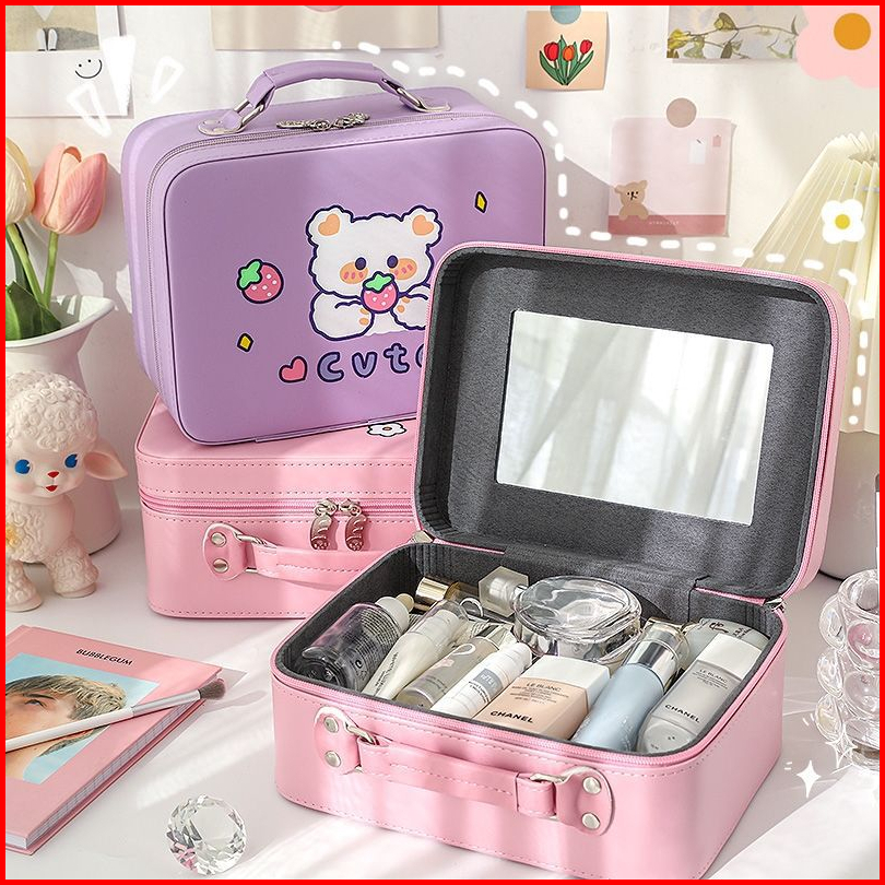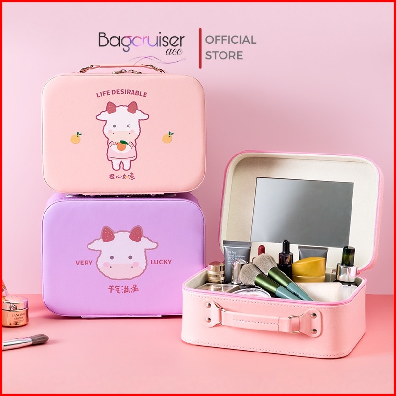 Koper Makeup 91101 Glamour Reflection Kapasitas Besar Kulit Premium Desain Lucu