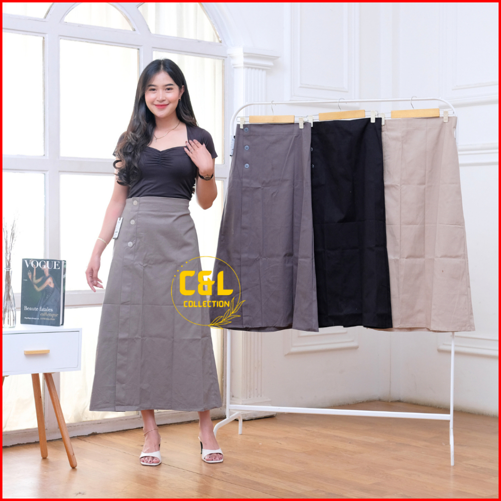 C L - Luna Skirt Rok Panjang Wanita Korean Style Standar Jumbo Katun Twill Combed
