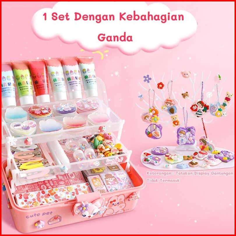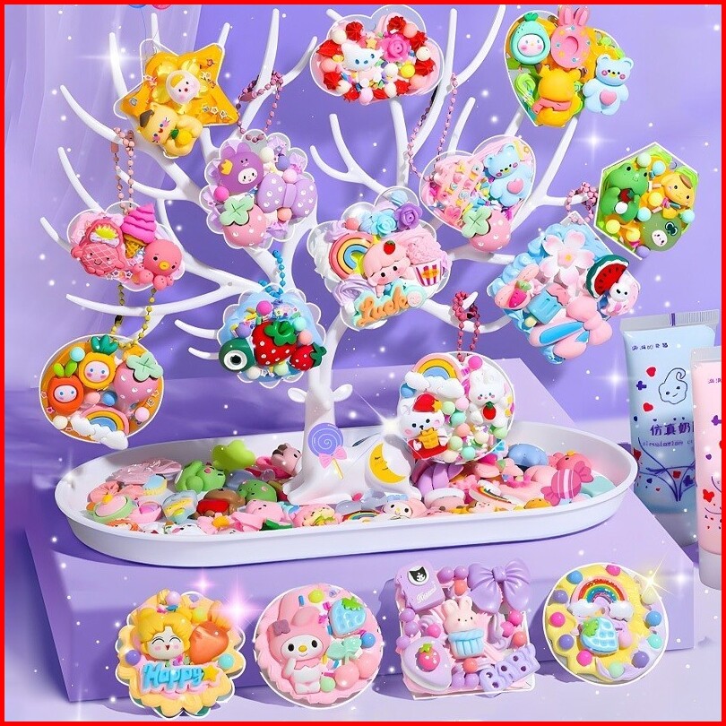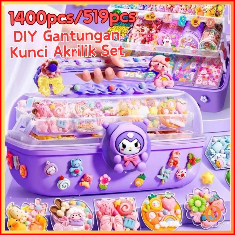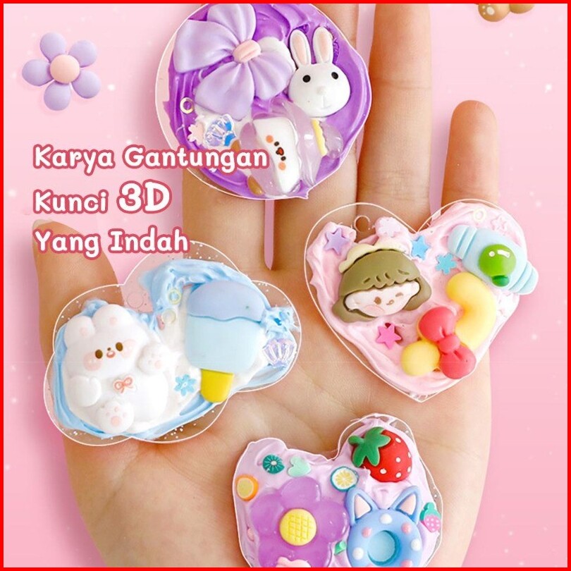 Penjual Lokal Free Kotak Diy Gantungan Kunci Akrilik Set Diy Stikcer Keychain Set Lucu Cream Gum Kartun Mainan Guka Anak