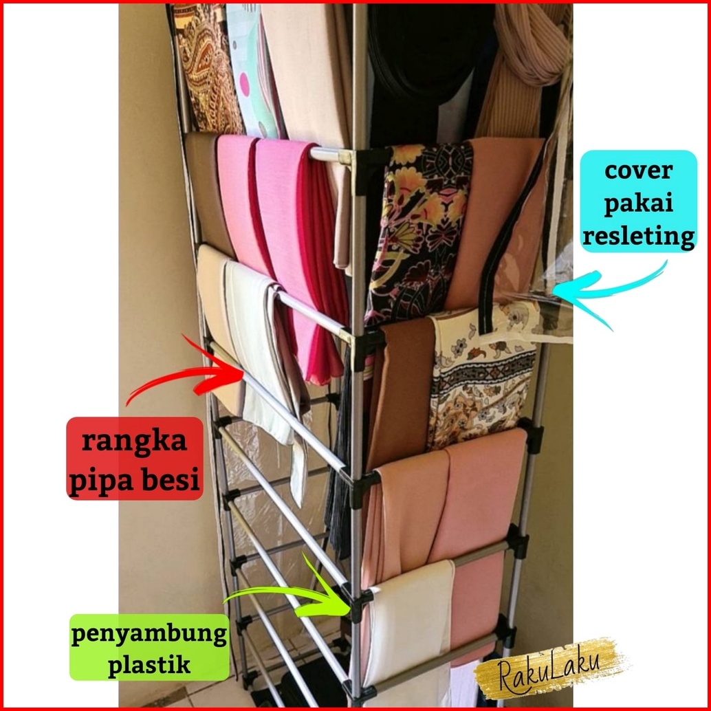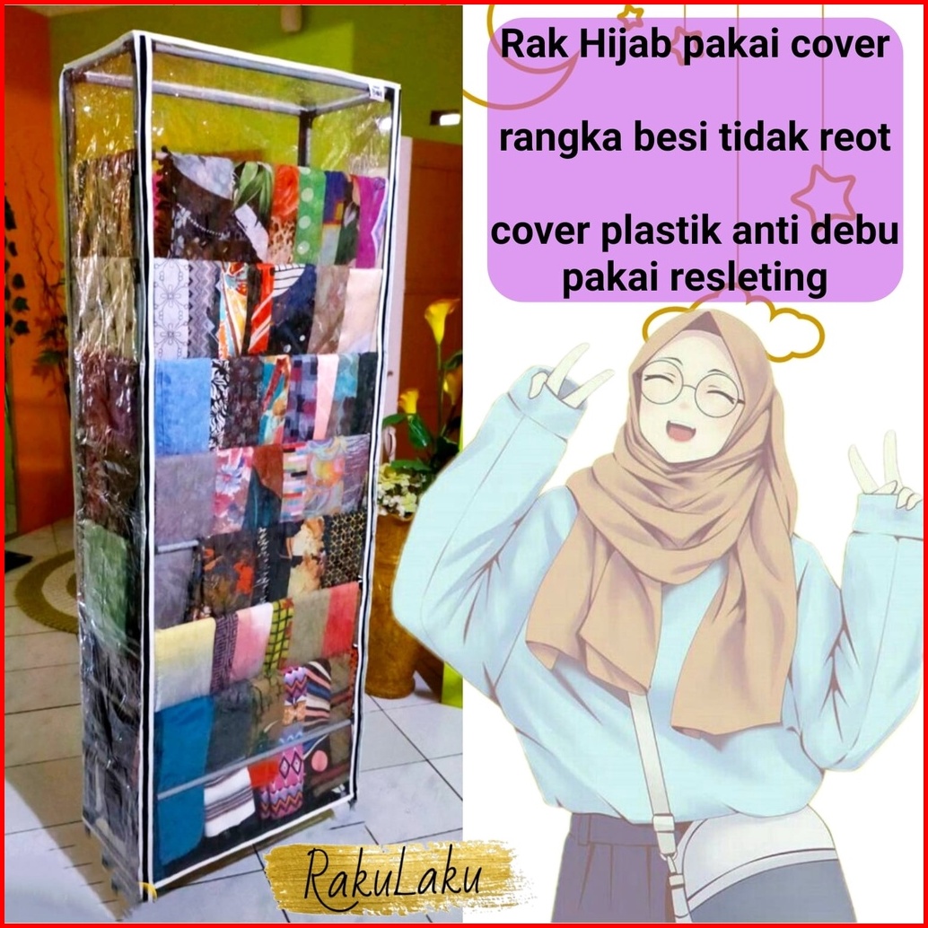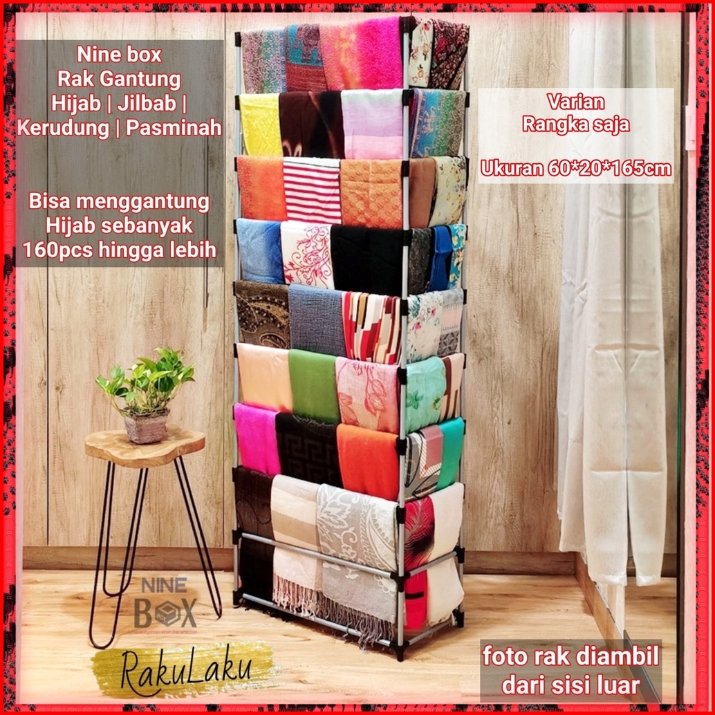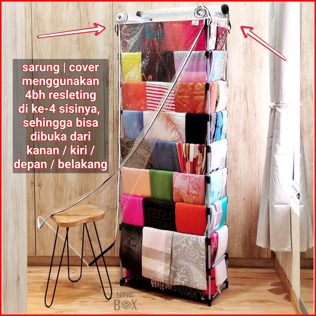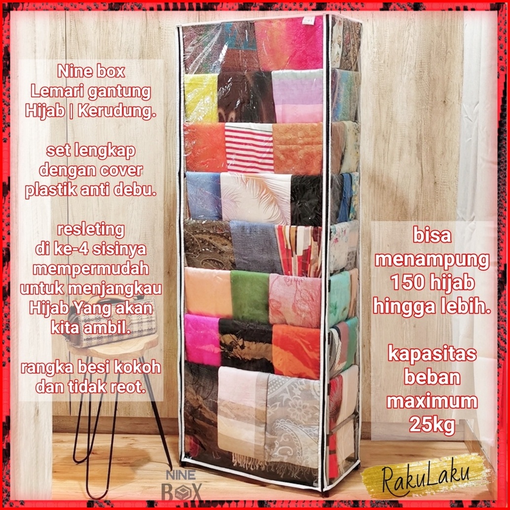 Nine Box Lemari Hijab Rangka Besi Pakai Cover Plastik Rak Hijab Dengan Cover Plastik Anti Debu