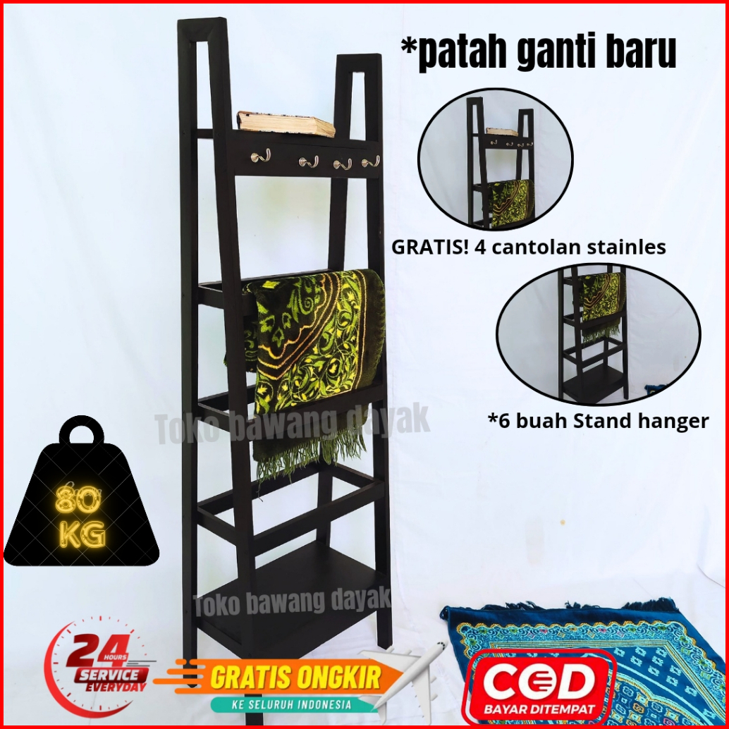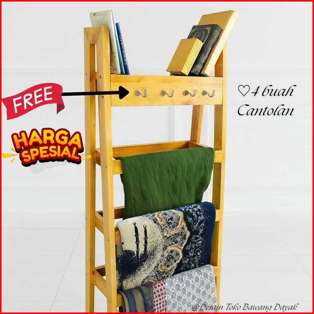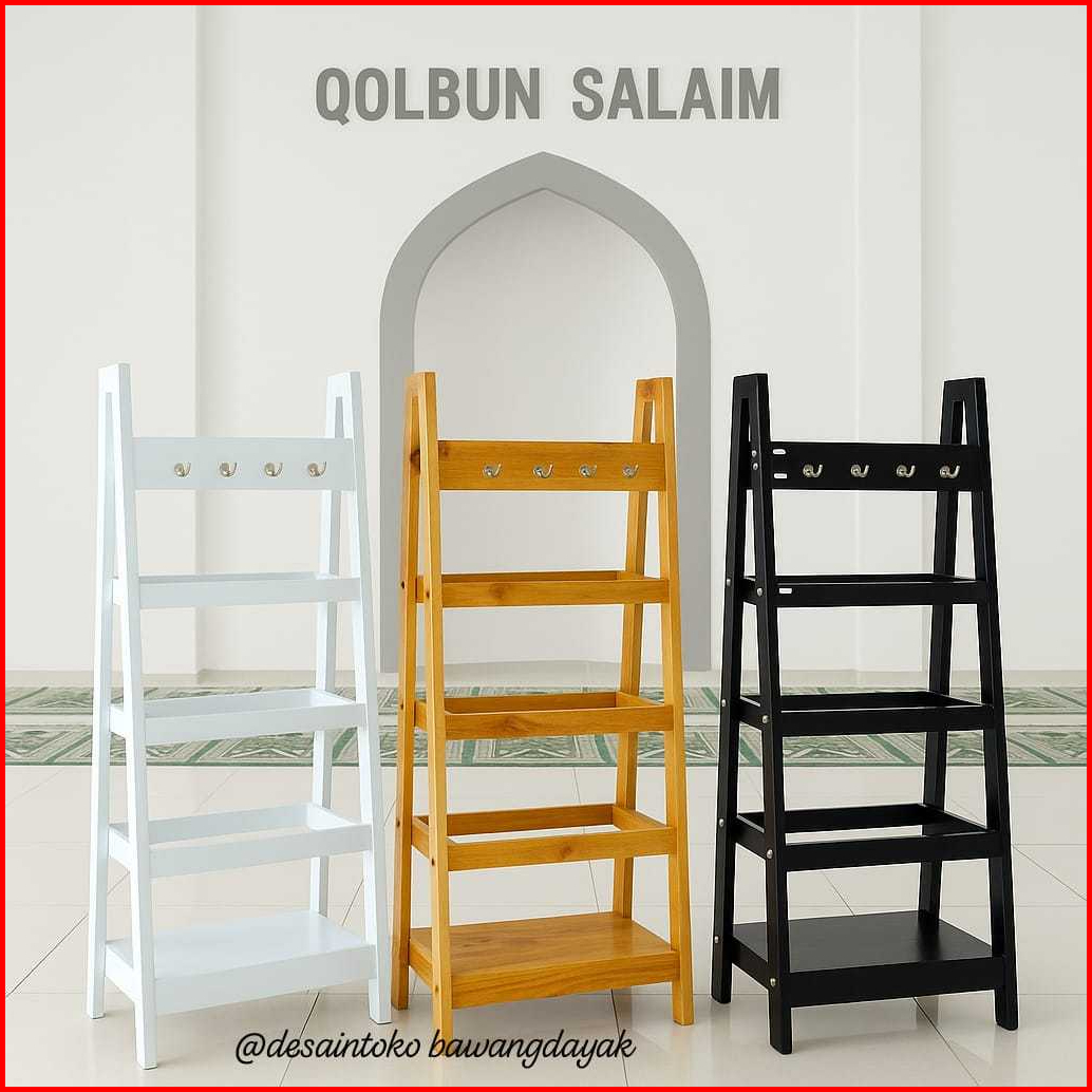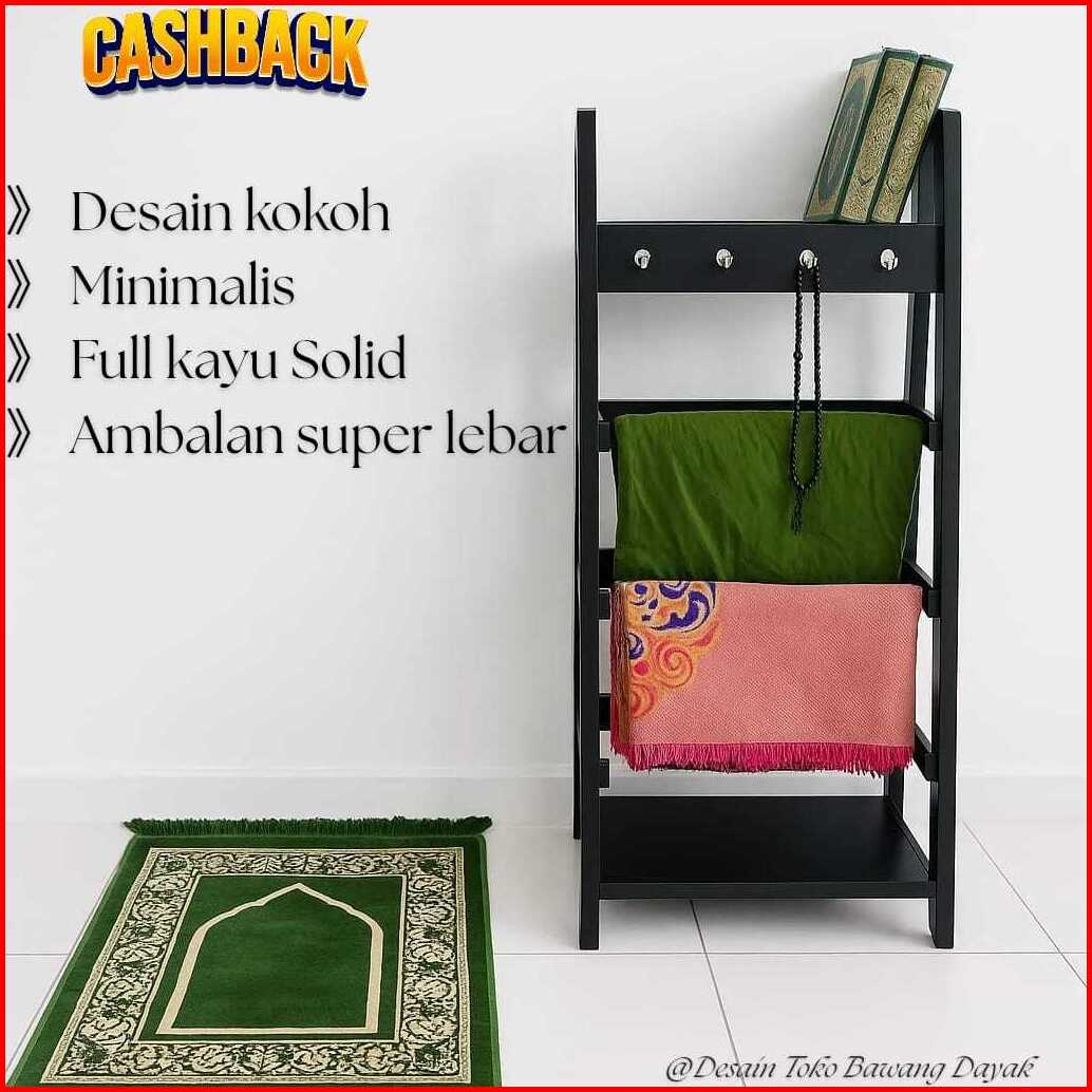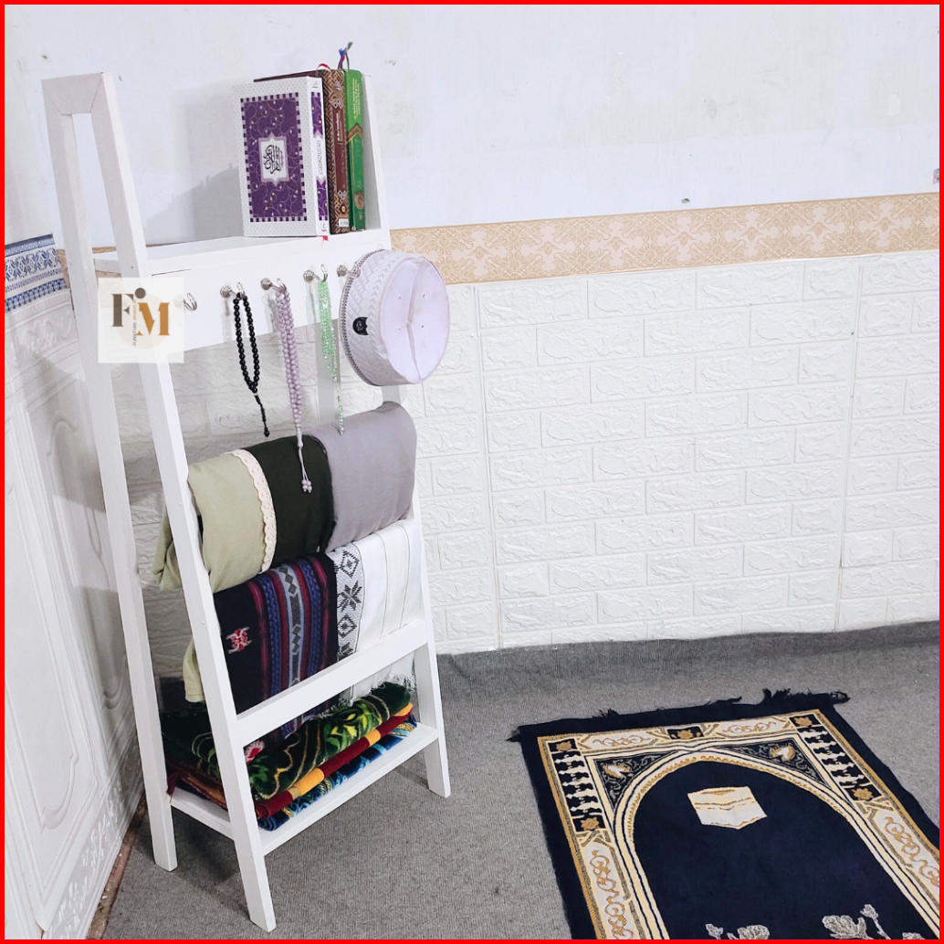Rak Sajadah Mukena Kayu Minimalis Stand Alquran Rak Jilbab Hanger Multifungsi Estetik