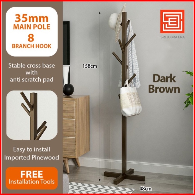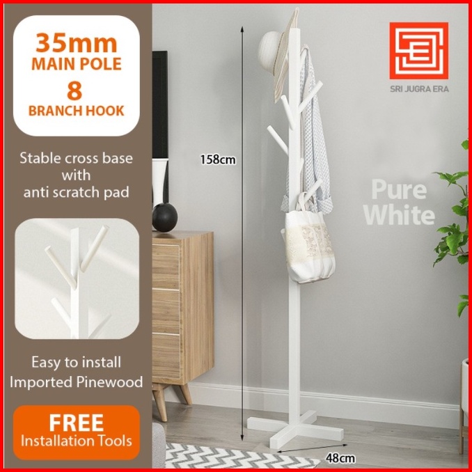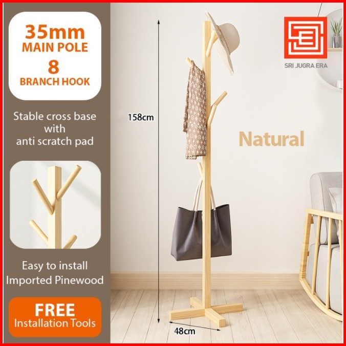 Stand Hanger Kayu Rak Gantung Baju Topi Hanger Baju Kayu Wooden Rack Flat Stand Coat Hanger Clothes Hanger Hanging Rack