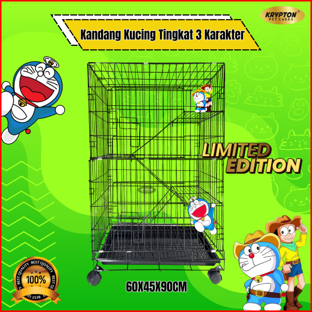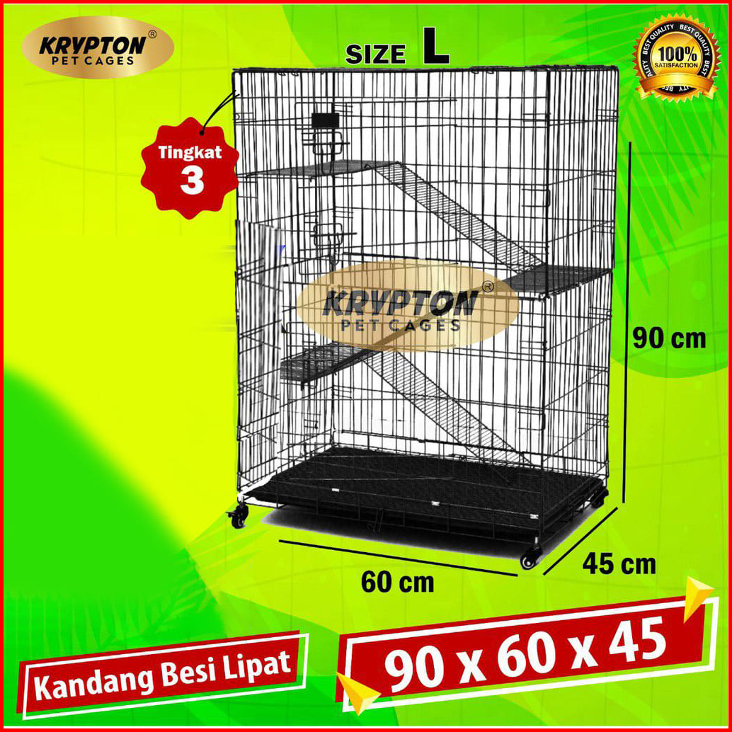 Kandang Kucing Tingkat 3 Size L 90x60x45 Roda - Berat 6kg