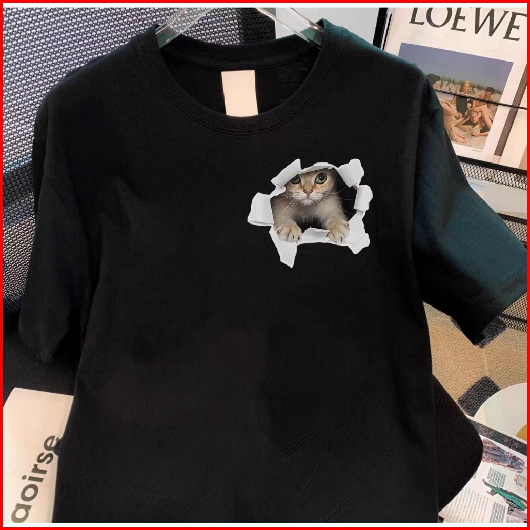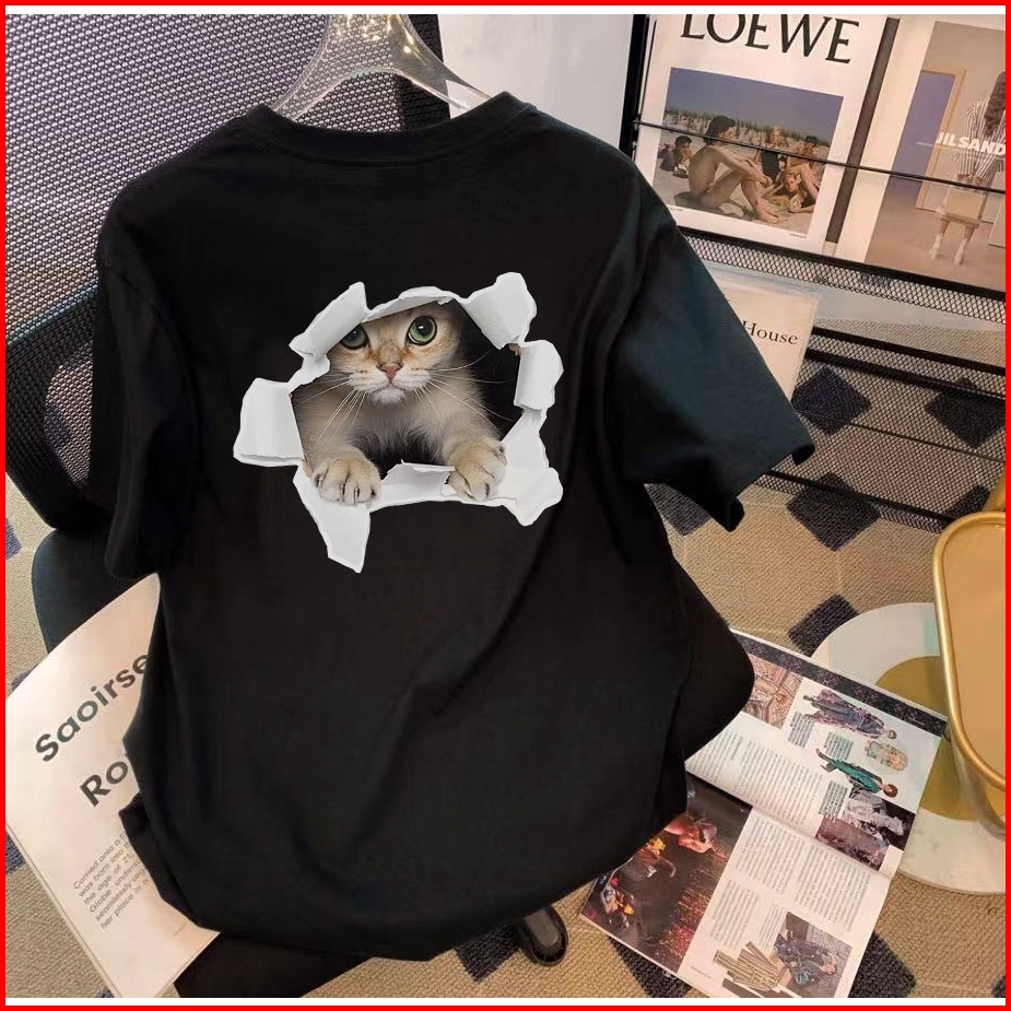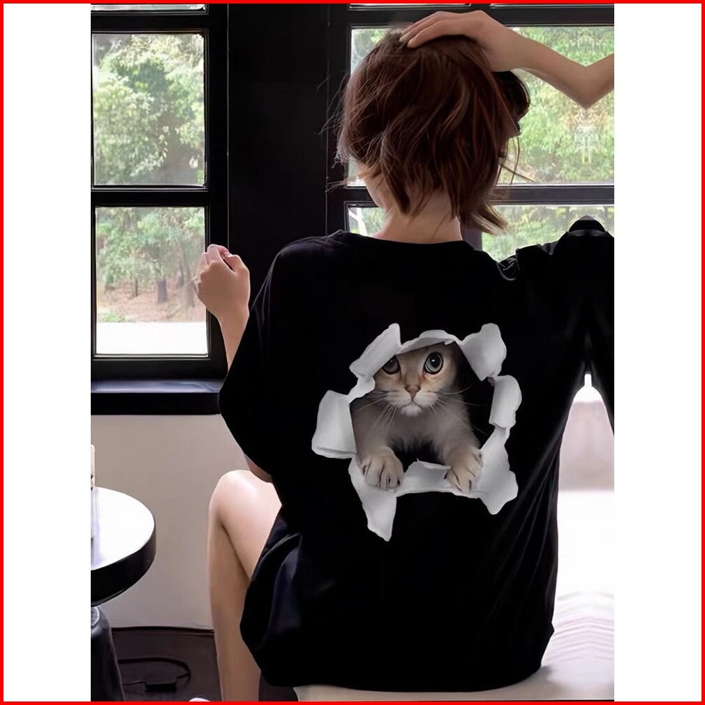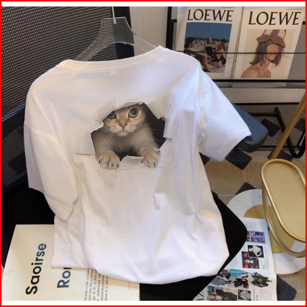 T Shirt White Cat Kaos Oversize Wanita Baju Wanita Korea Baju Atasan Wanita Terbaru 100 Cotton