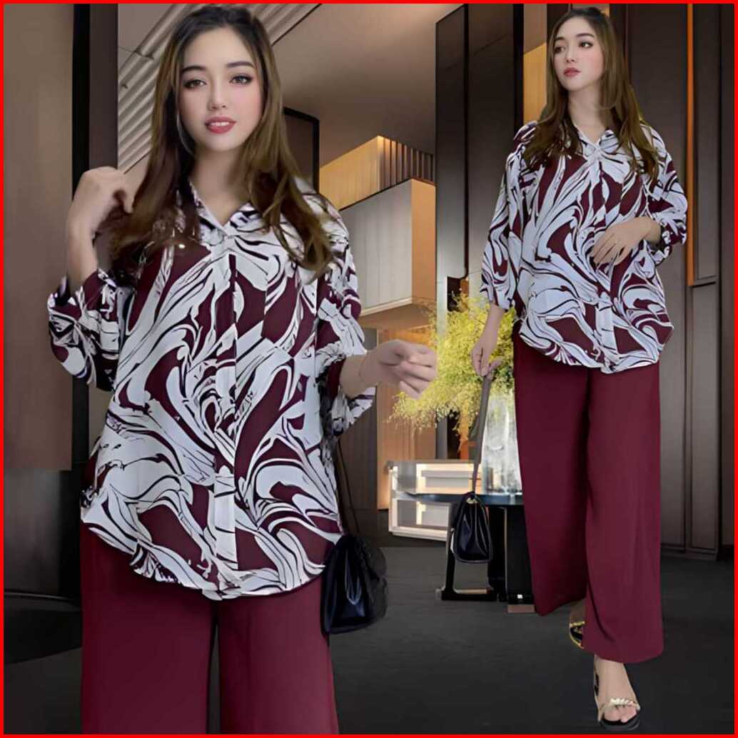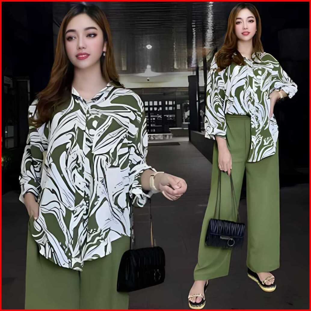 Bakhita Setelan Crincle Wanita Kekinian Ld 120 Atasan Kemeja Oval Celana Lurus Bahan Crincle Airflow