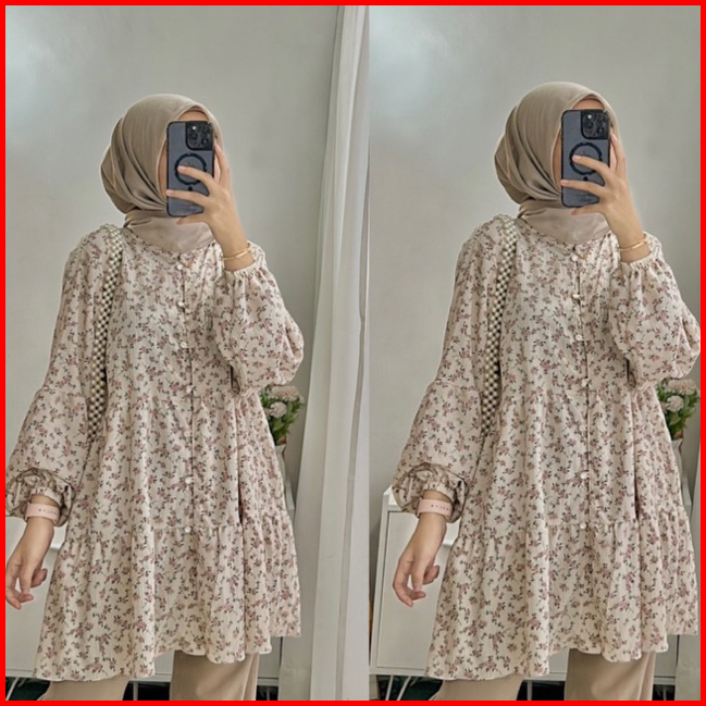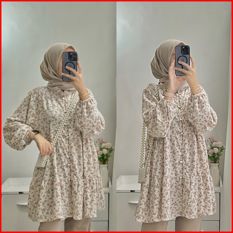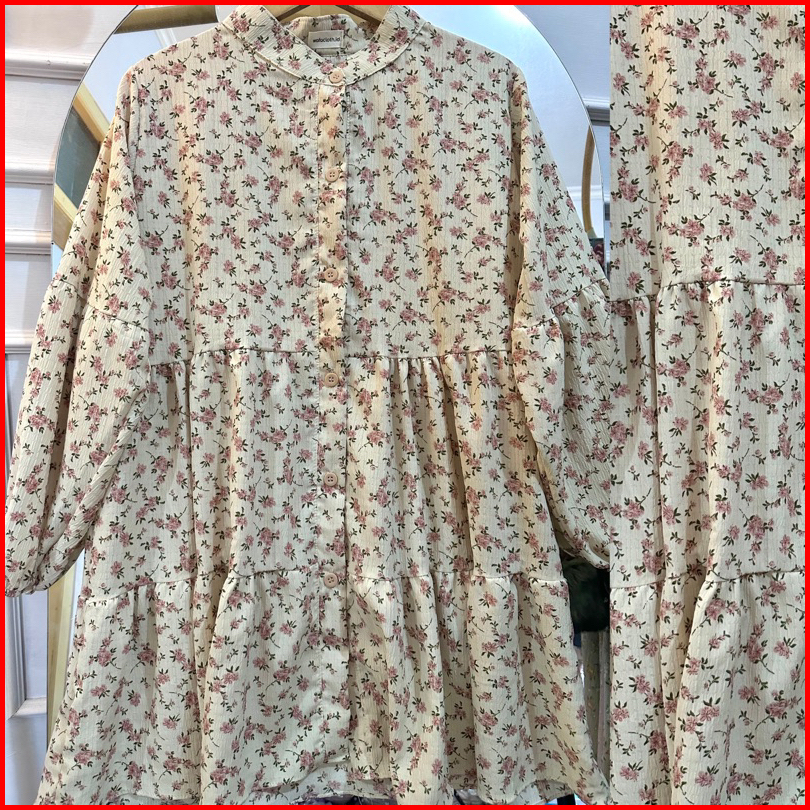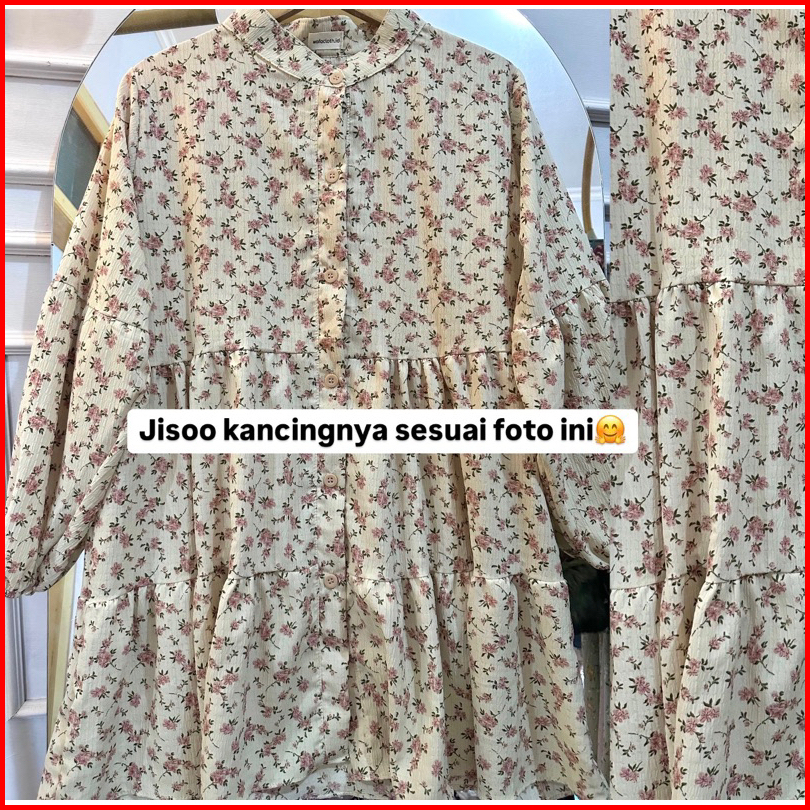 Jisoo Blouse Atasan Korean Blouse Vintage Blouse Babby Doll Motif Bunga