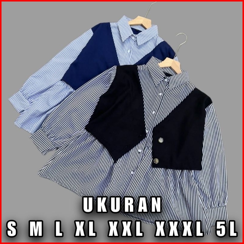 Davira Kemeja Vest Wanita Jumbo - Kemeja Motif Wanita Big Size - Ukuran S M L Xl Xxl Xxxl 5l - Kemeja Crop Wanita Korean