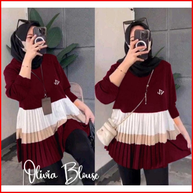 Olivia Blouse Atasan Knit Blouse Jumbo Atasan Wanita