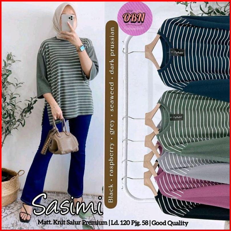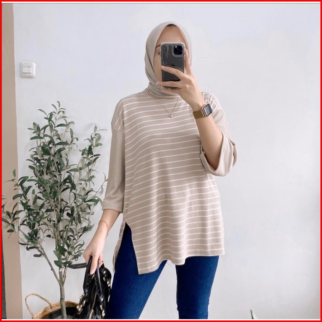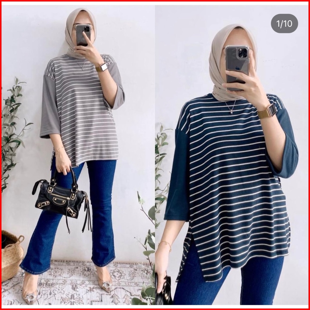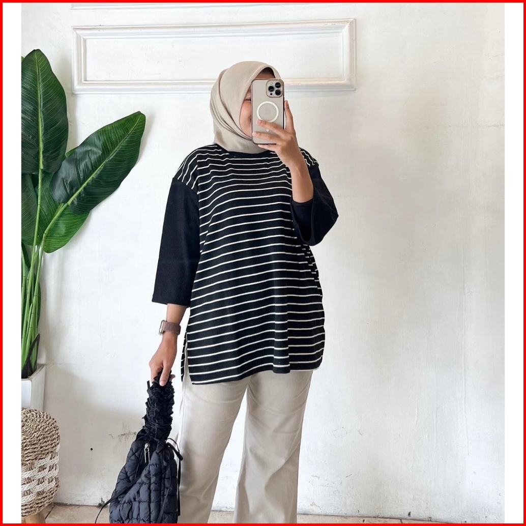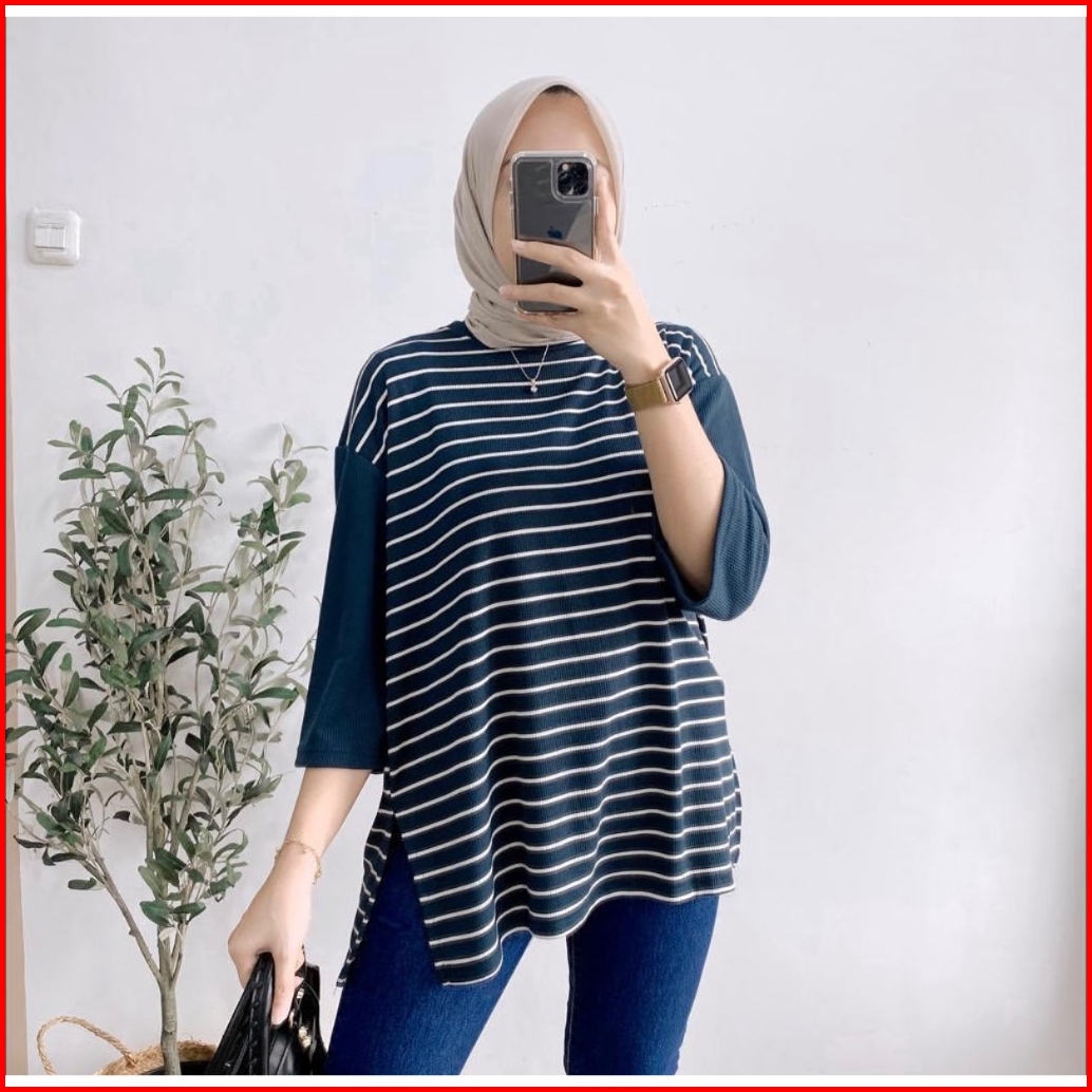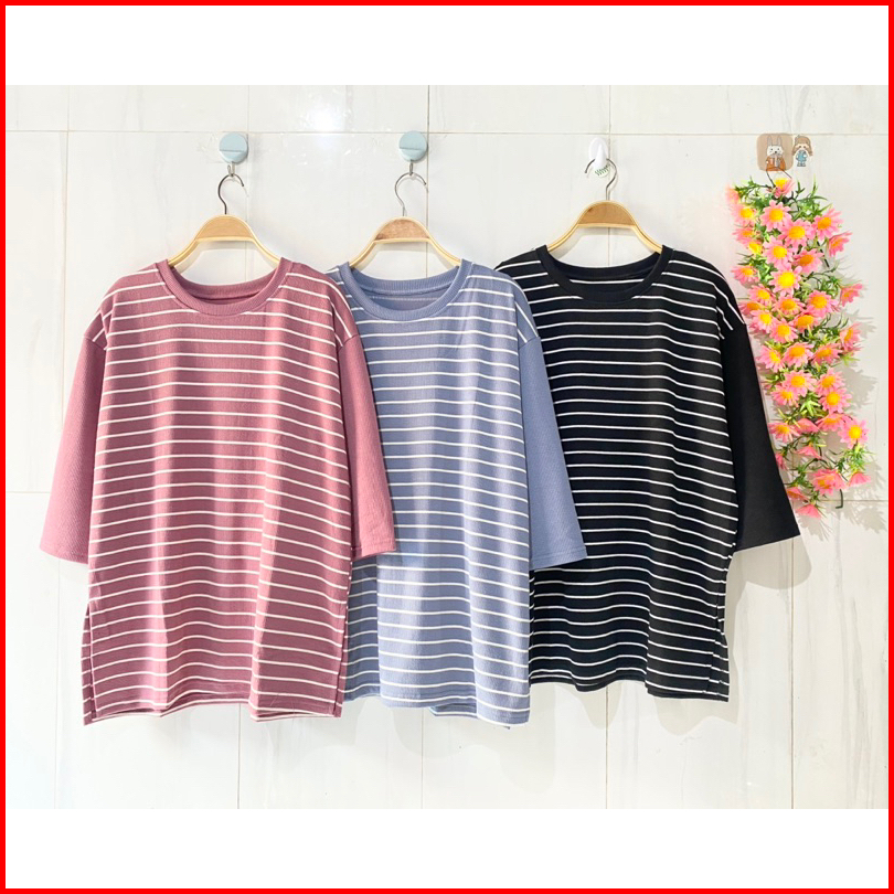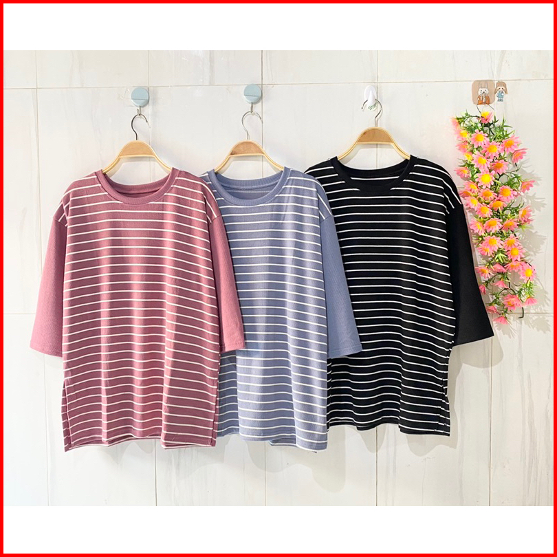 1320 Atasan Oversize Wanita Kaos Knit Salur Kombinasi Kaos Oversize Wanita Atasan Wanita Jumbo