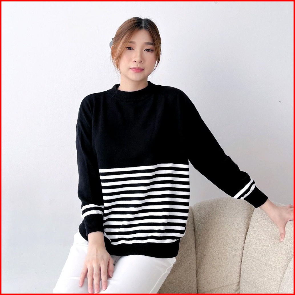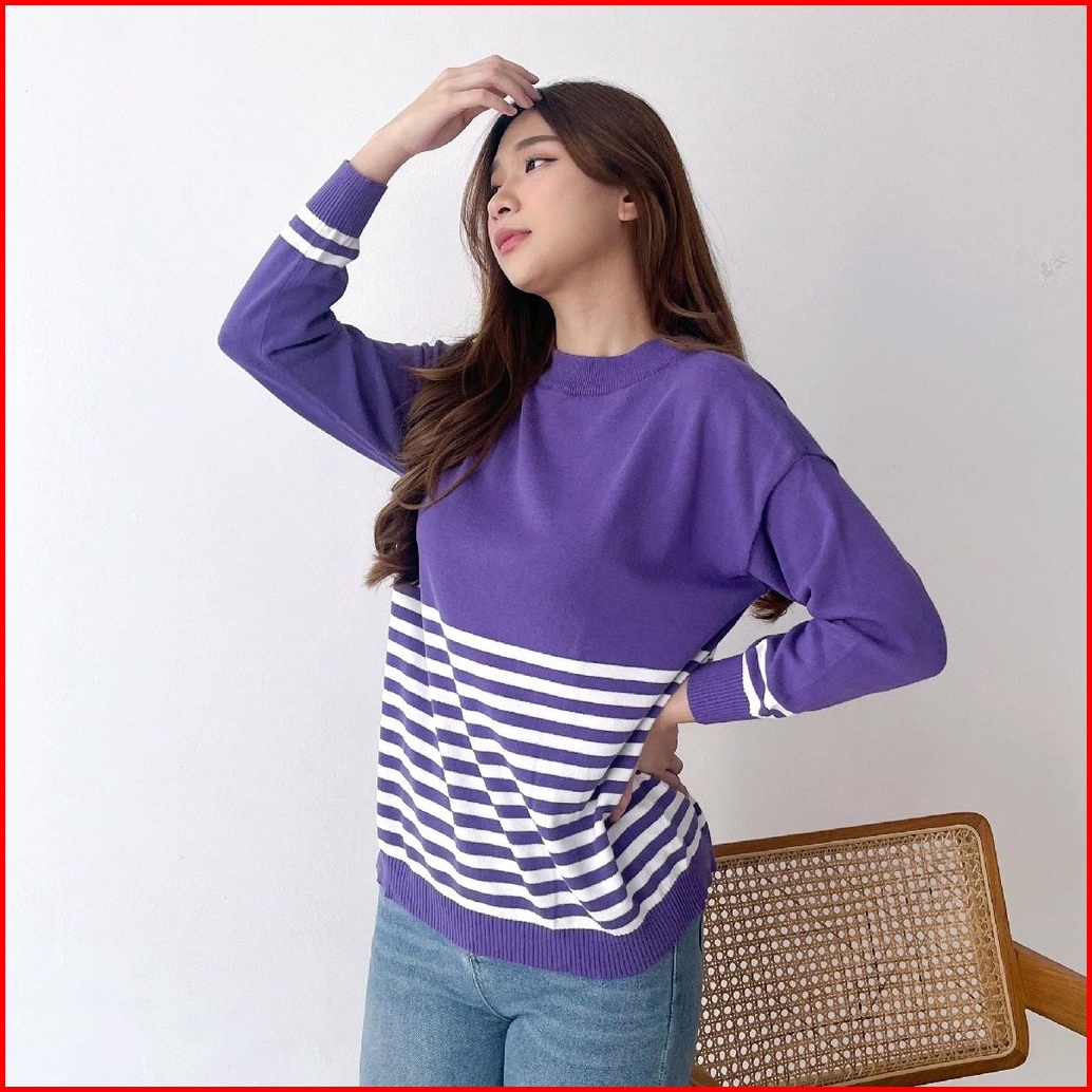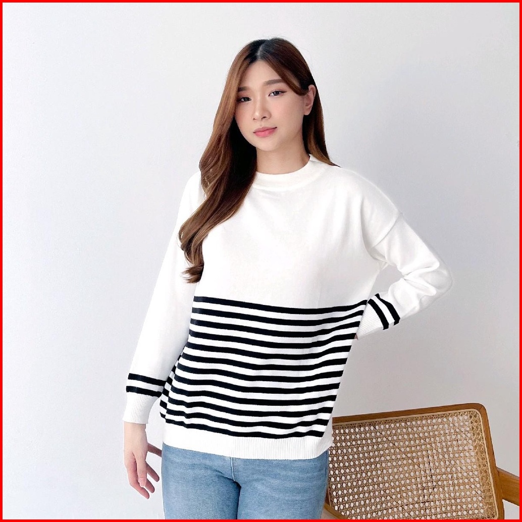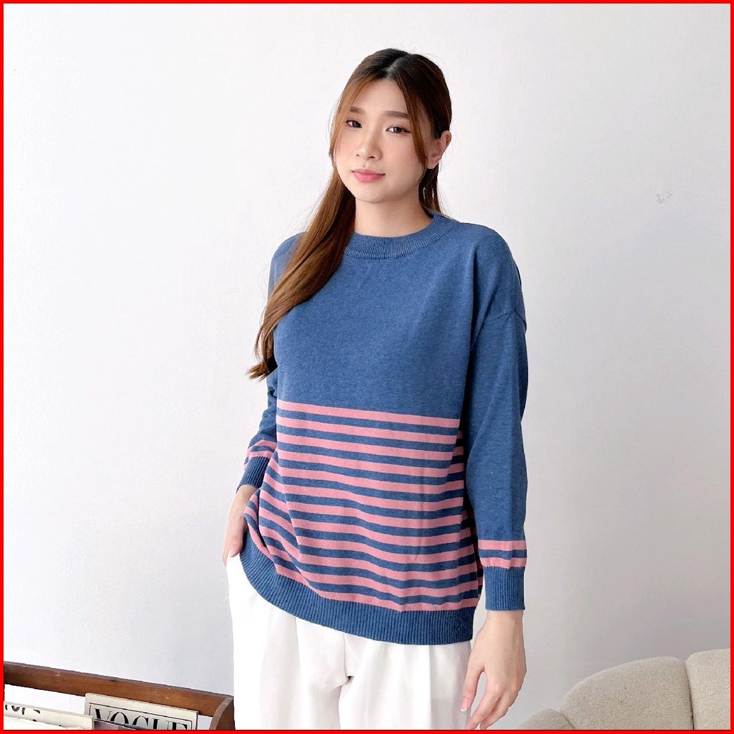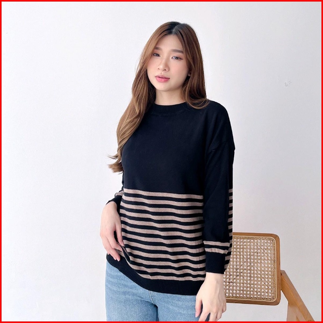 Eiko Knit Tops - Sweater Rajut Katun Wanita Motif Garis Garis