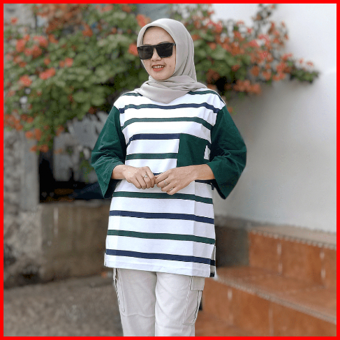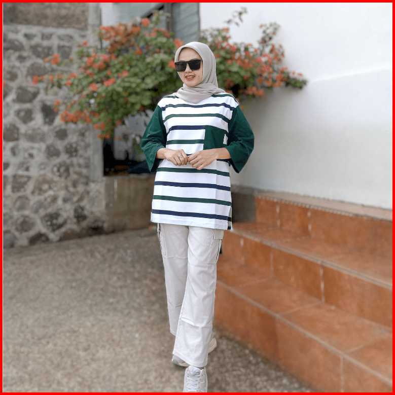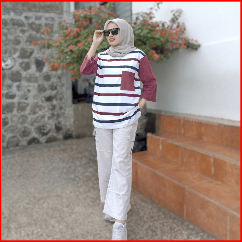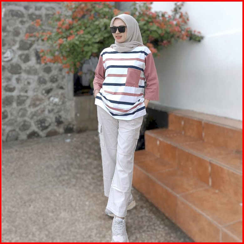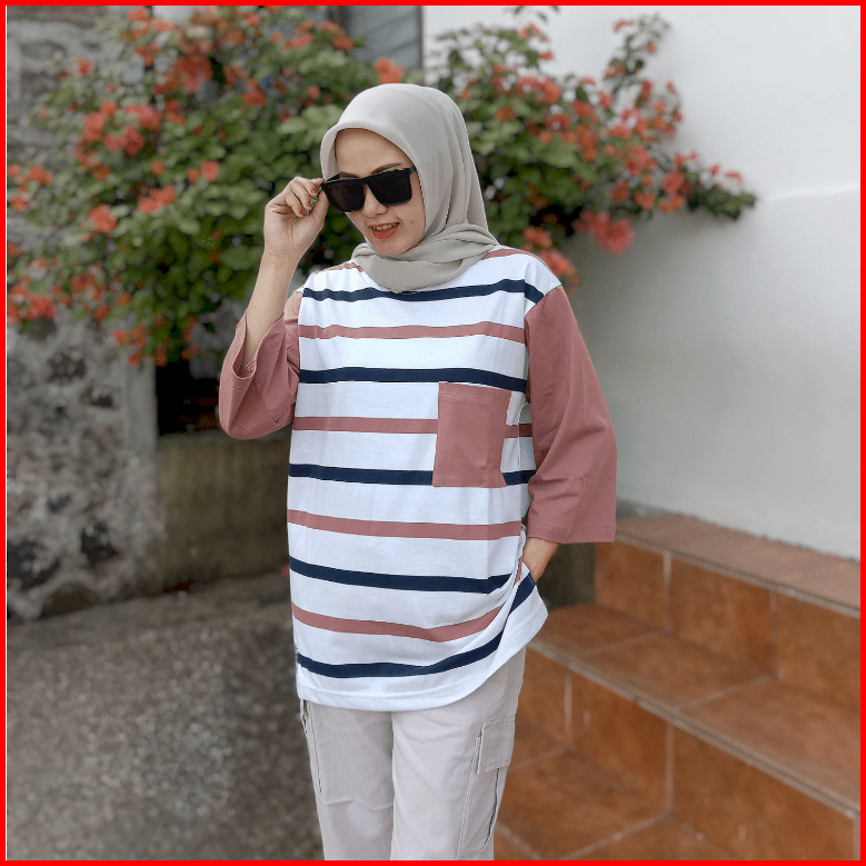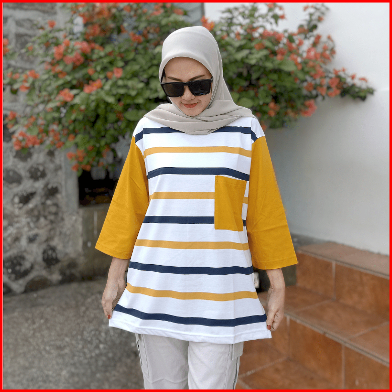 Kaos Salur Stripe Casual Terlaris Oversized Basic Saku