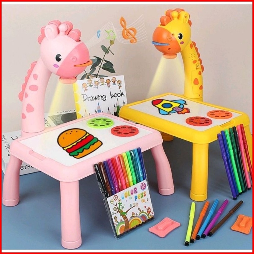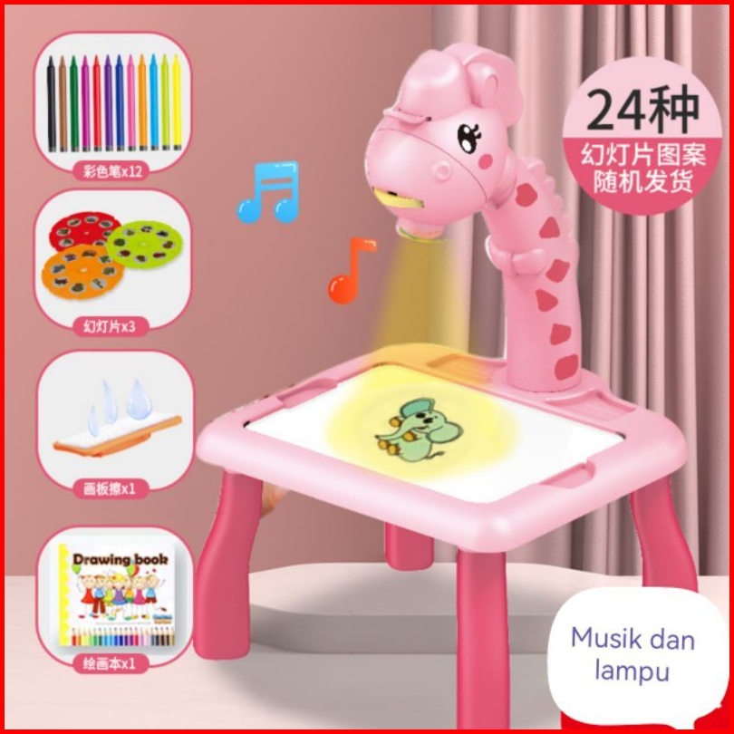Meja Belajar Anak Gambar Proyektor Edukasi Anak Jerapah Besar