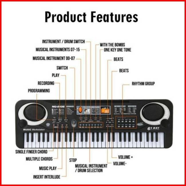 Tma Mainan Anak Piano Elektronik 61 Keys Keyboard Electronic 61 Keys Lengkap Mic Dan Charger