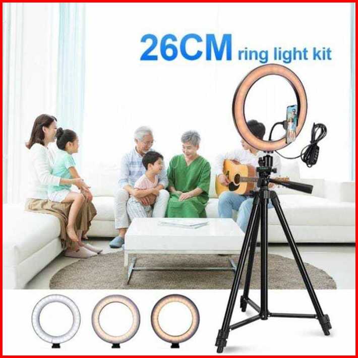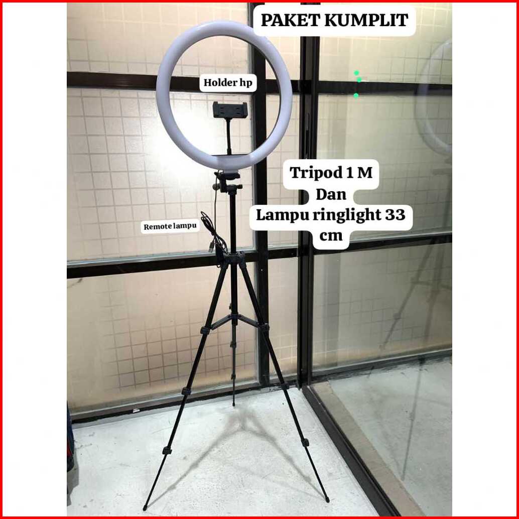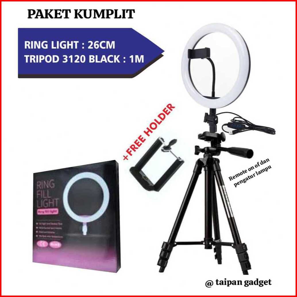 Paket Kumplit Tripod 3120a Ringlight - Full Black Free Holder U 1meter Make Up Vlog Lampu Ring Light