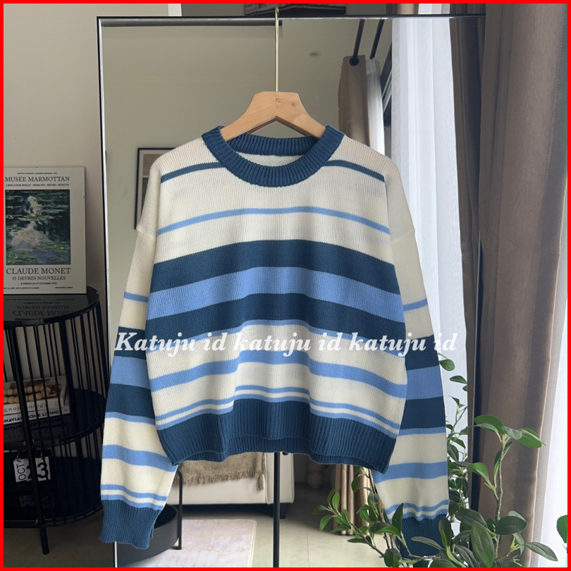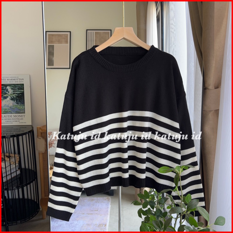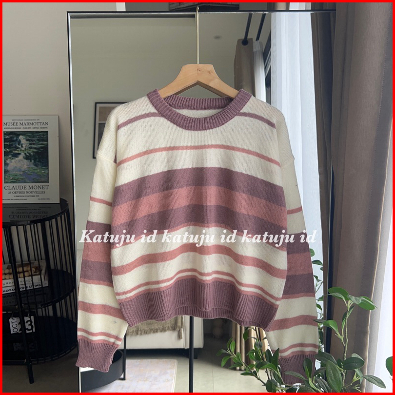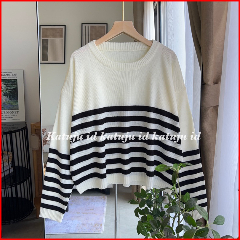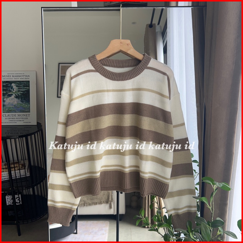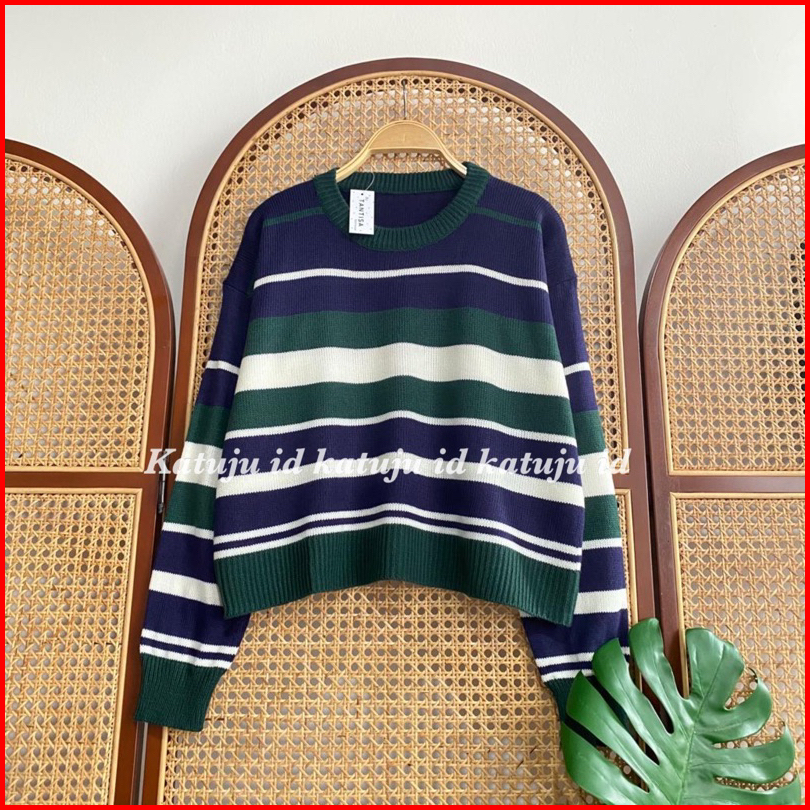 Sweater Rajut Crop Motif Garis Nicole