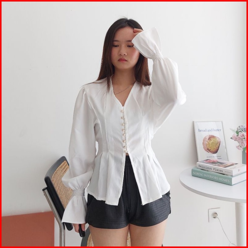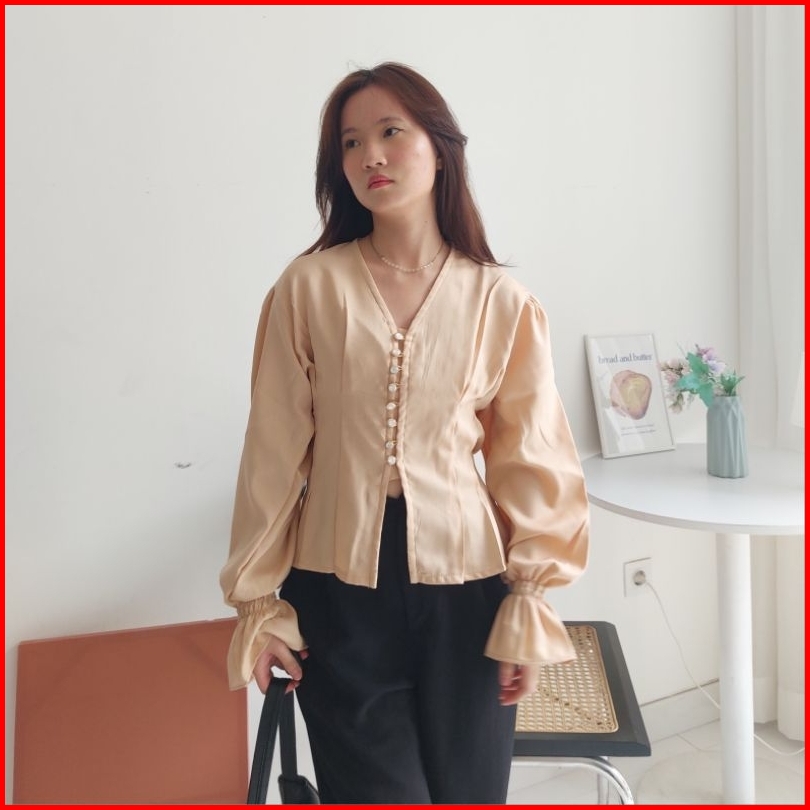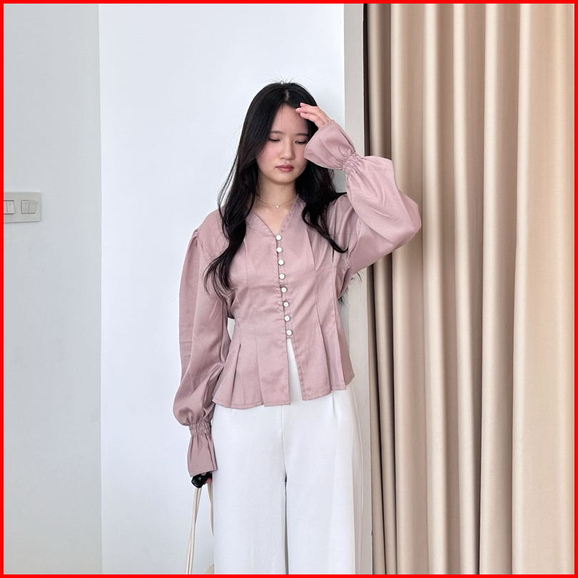 Bora Top Blouse Wanita Korea Atasan Kantor Wanita Kasual Blouse Elegan Korea Blouse Hijab Friendly Blouse Lengan Panjang