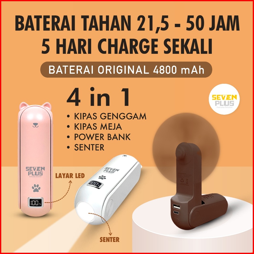 Sevenplus Kipas Angin Mini Portable Original 4800mah Layar Led Multifungsi 4 In 1 Kipas Angin Kecil Portable Fan Mini Po