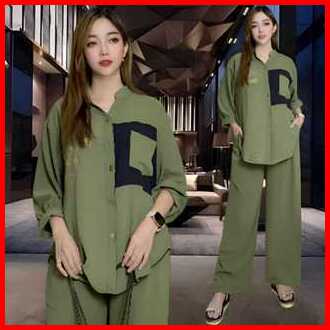 Elea Setelan Crincle Wanita Kekinian Ld 120 Atasan Kemeja Oval Celana Lurus Bahan Crincle Airflow