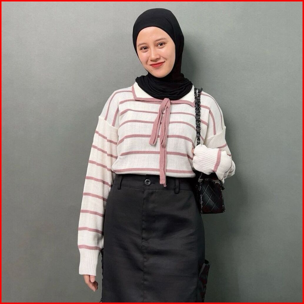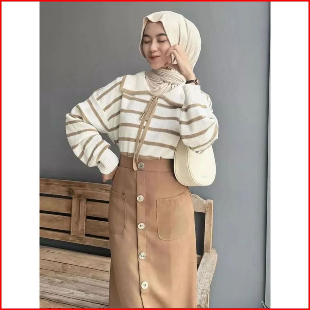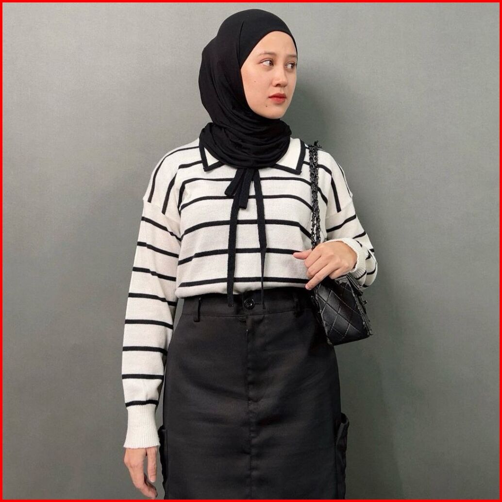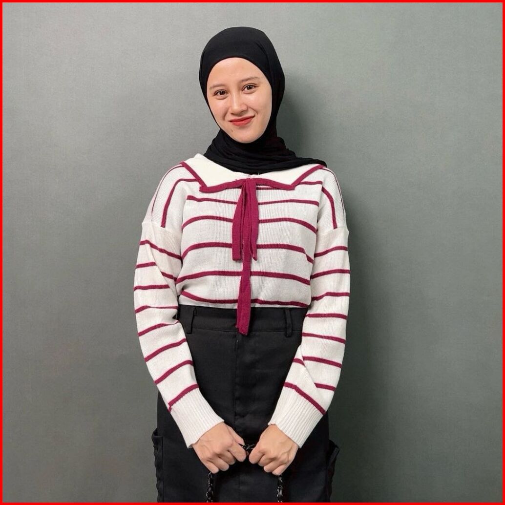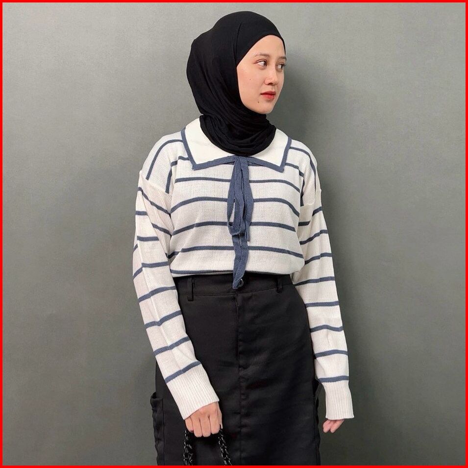 Nuri Blouse Knit Atasan Rajut Wanita Motif Setrip Garis Kerah Lucu Rajut Gemas Adem Ntr