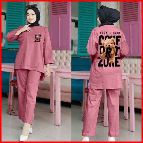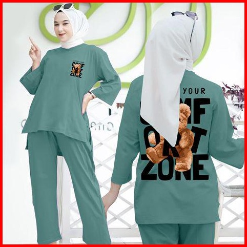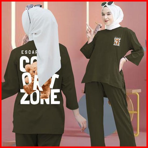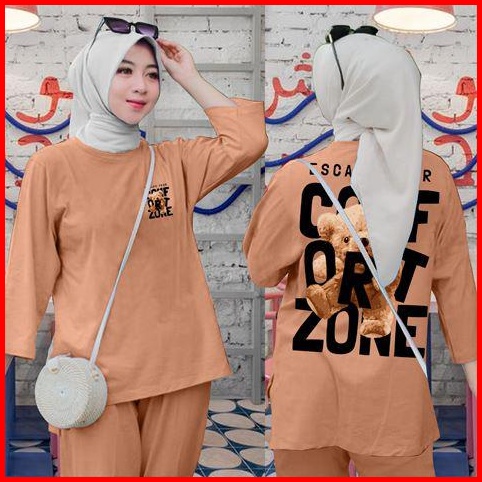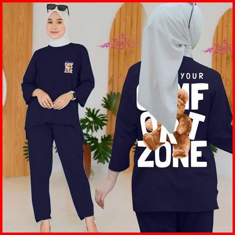 Setelan Wanita Ld 128 One Set Wanita Setelan Wanita Oversize Jumbo Motif Zone - Yu Kari
