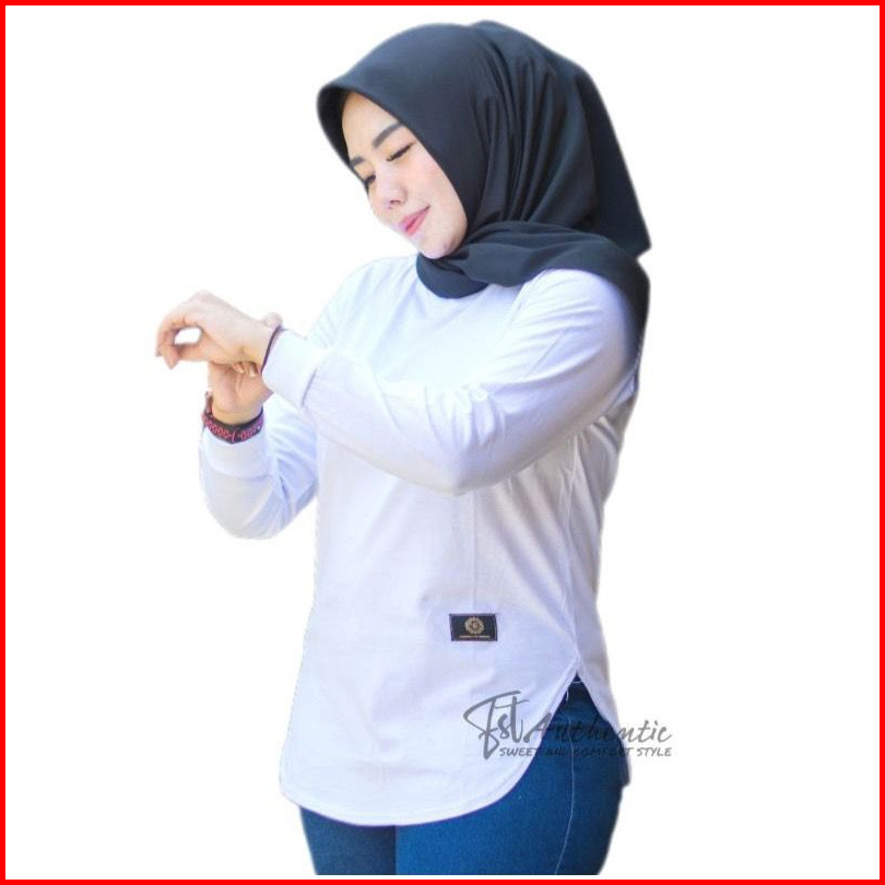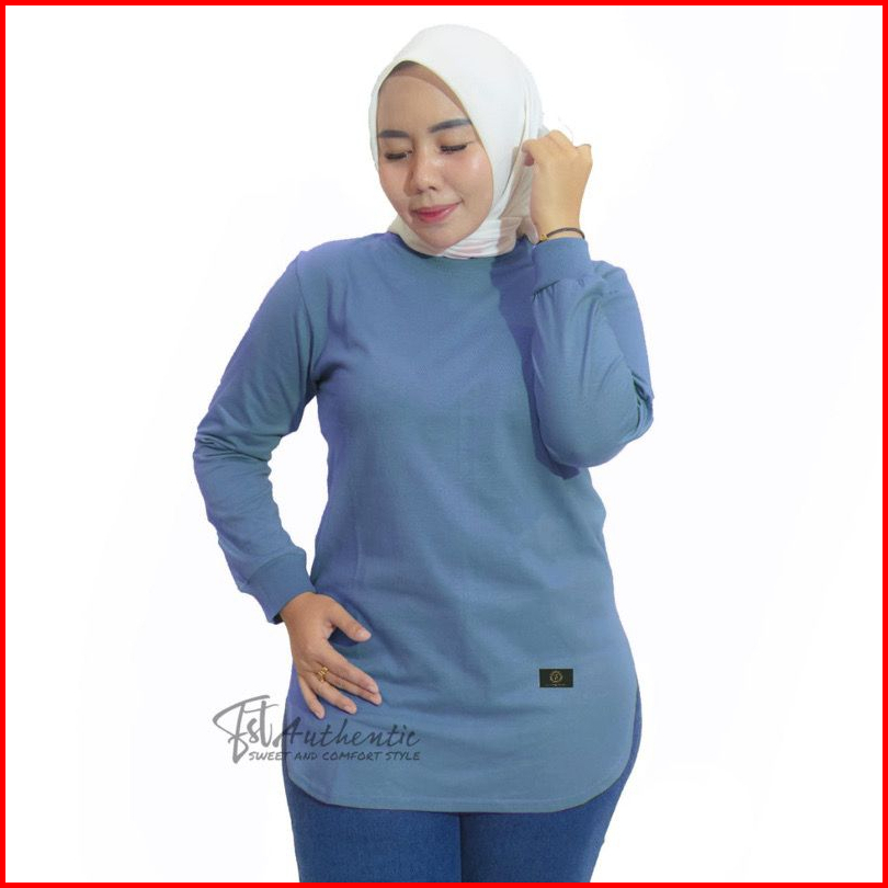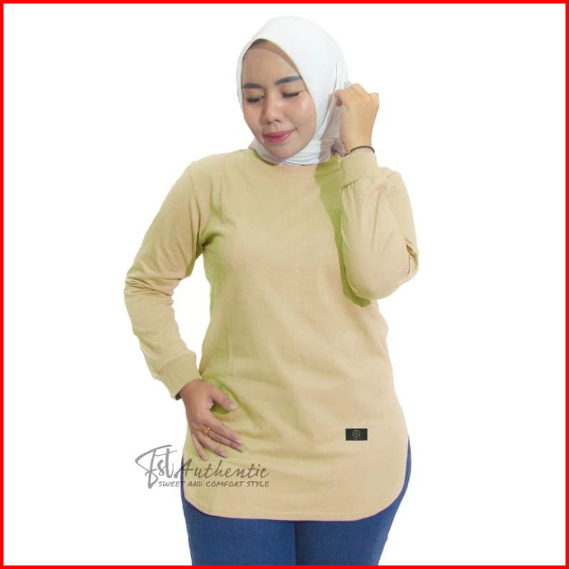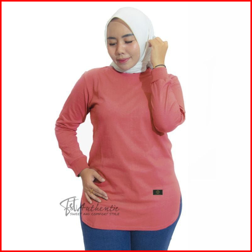 Atasan Baju Kaos Oversized Wanita Muslim Top Basic Polos Premium Terbaru Kekinian Kaos Polos Wanita Lengan Panjang Bawah