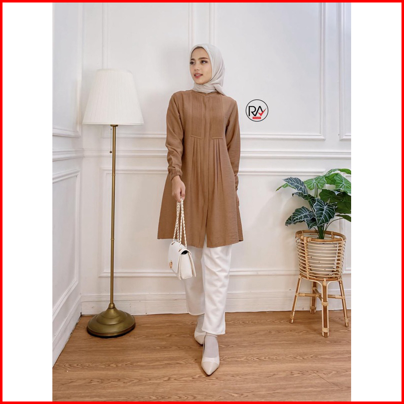 Ra Fashion Tunik Nayya - Tunik Polos Opnaisel Katun Linen Crinkle Original
