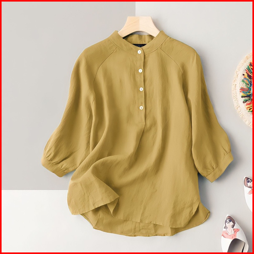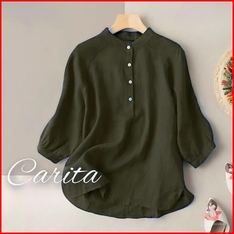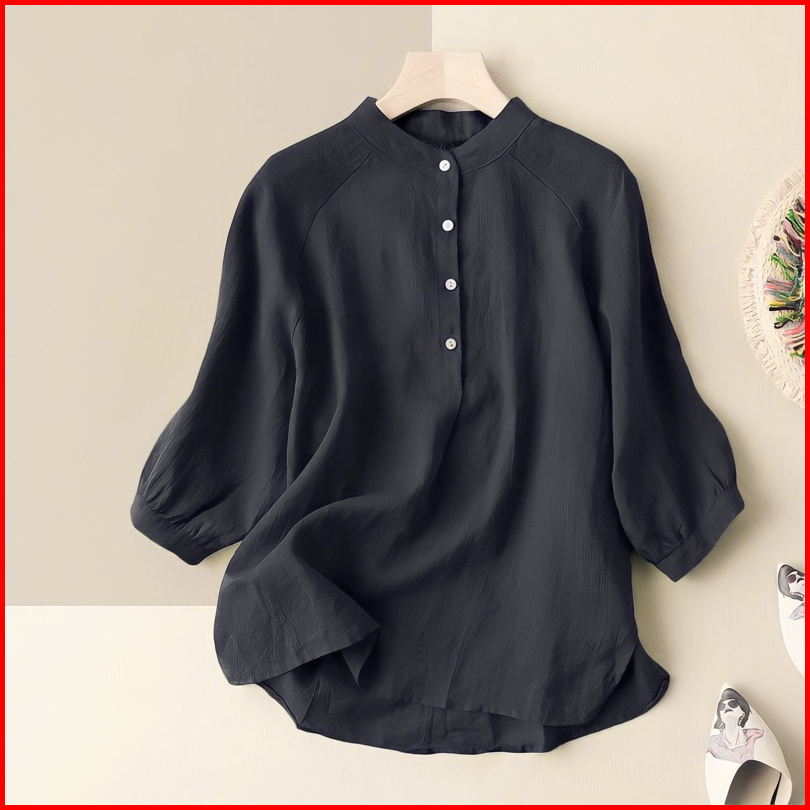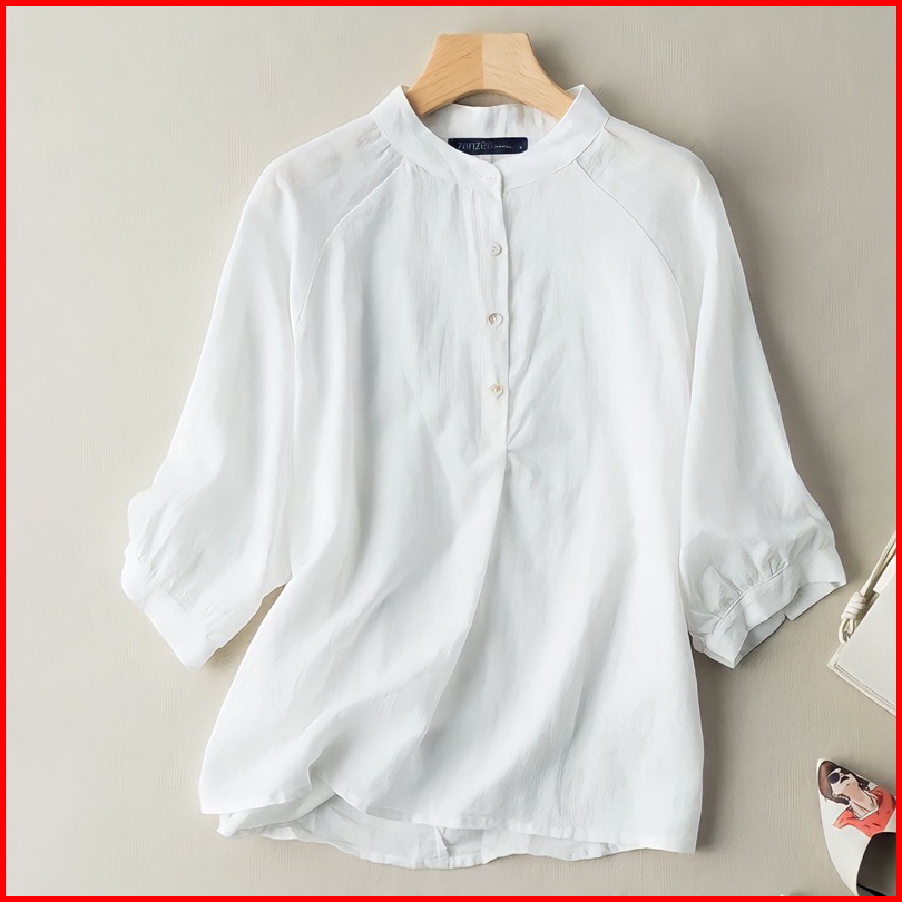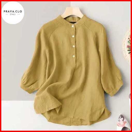 Praya.clo - Carita Kemeja Linen Wanita Kerah Sanghai Lengan Panjang