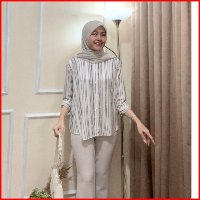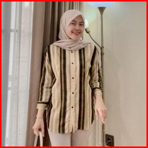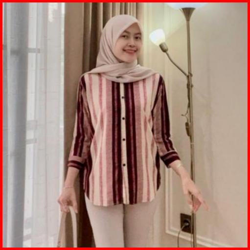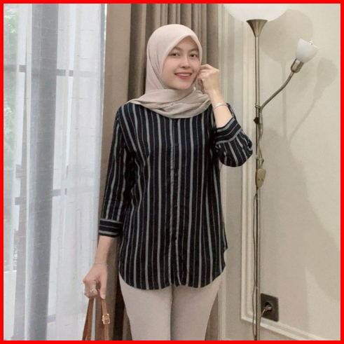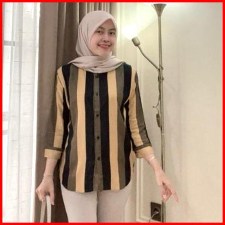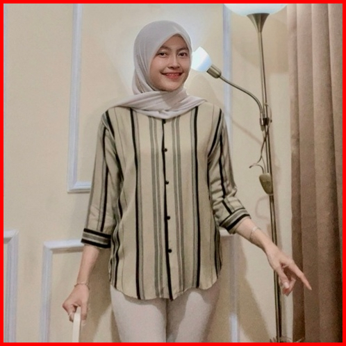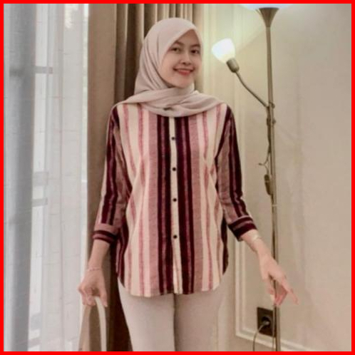 Daily Top Salur Kemeja Wanita Salur Bahan Rayon Oversize Lengan Panjang Terviral 2025
