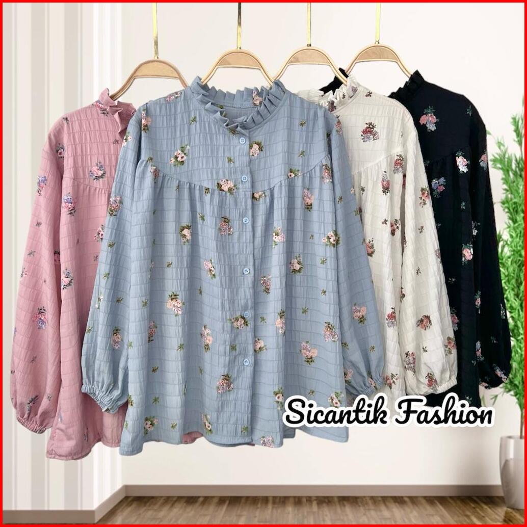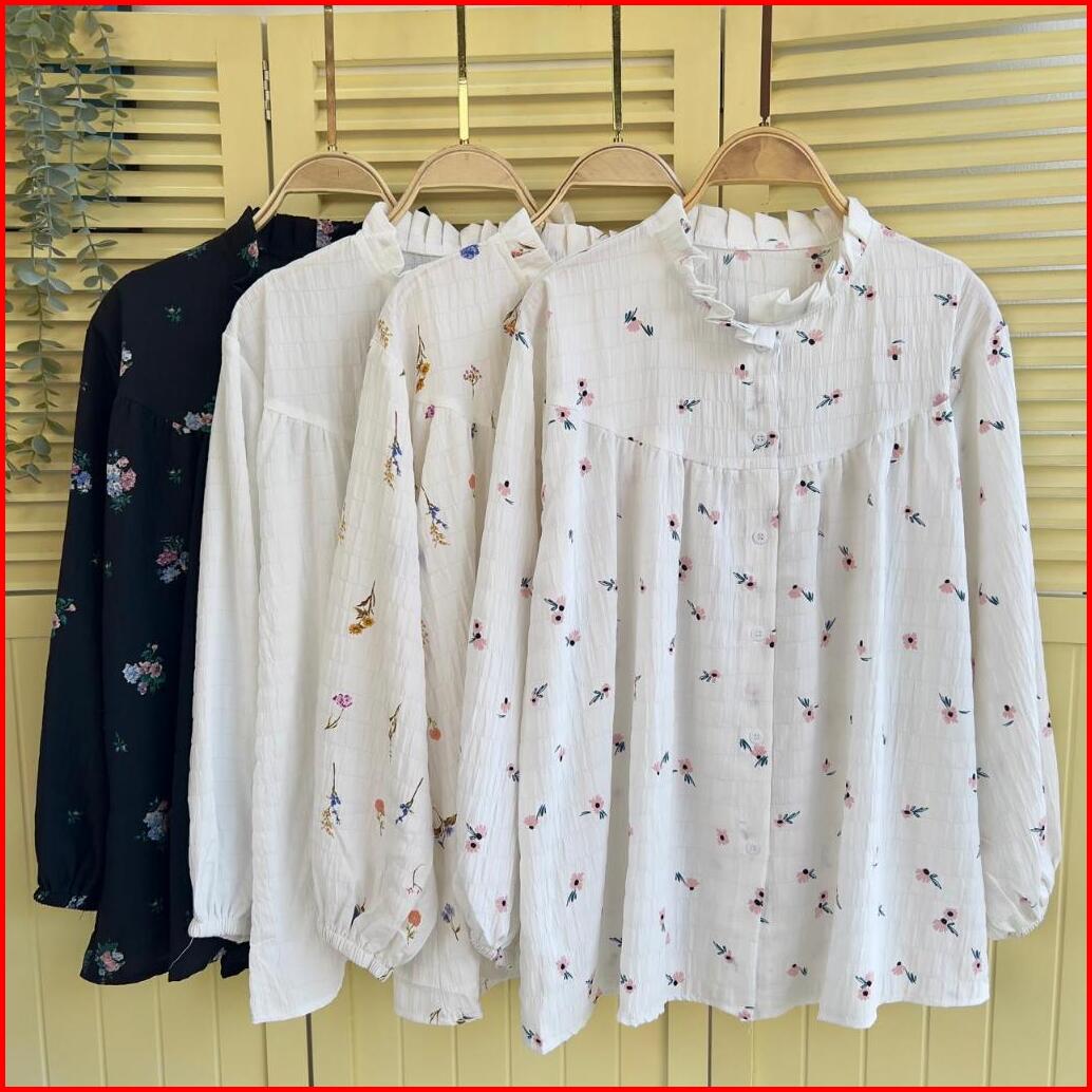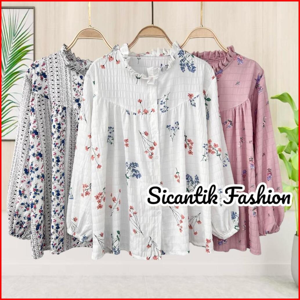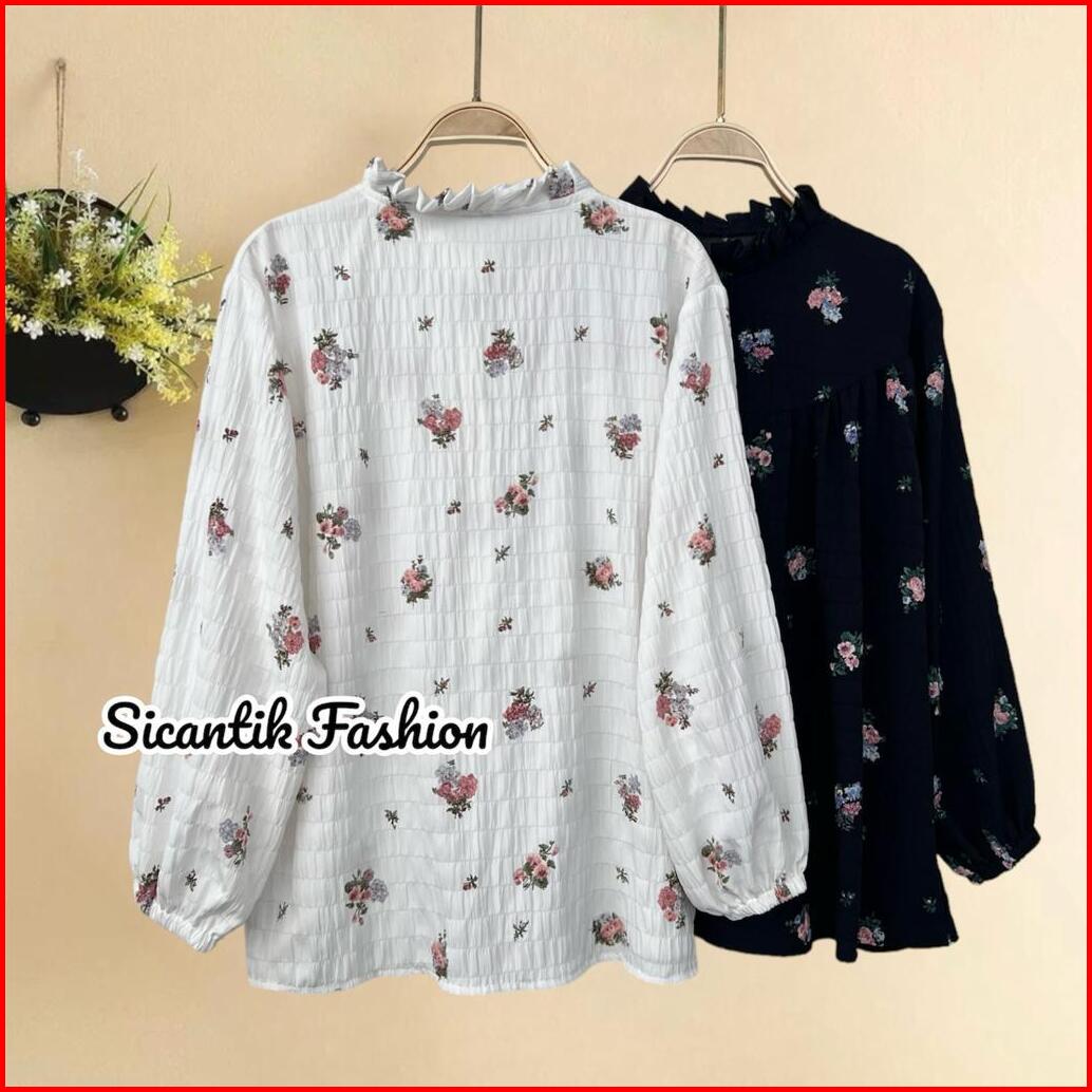 Blouse Kemeja Wanita Motif Bunga Atasan Cewek Korean