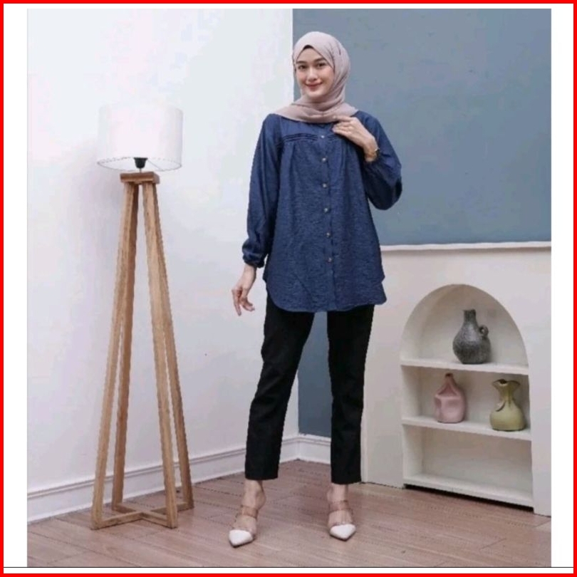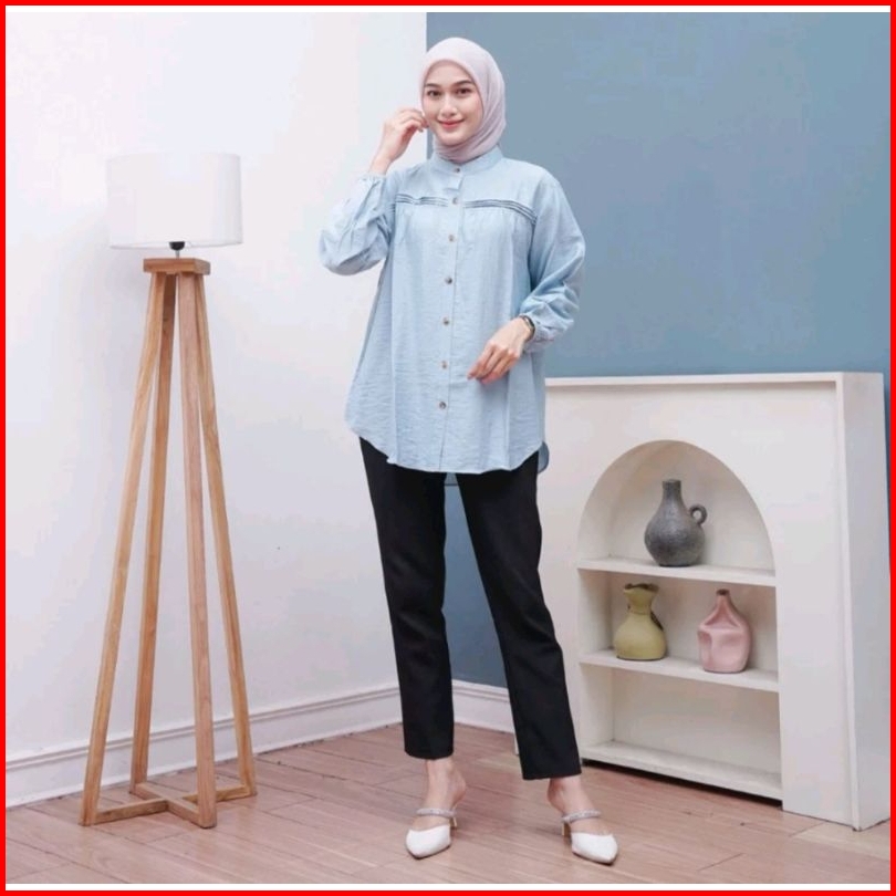 Kemeja Wanita Bahan Polo Linen Tami Blouse Atasan Wanita Full Kancing Ld120