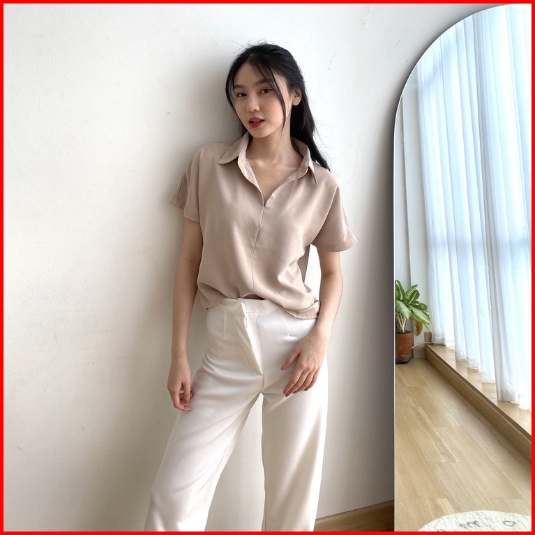 Kaorithelabel Kyuto Basic Top Lengan Pendek Blouse Wanita - Casual Top - Atasan Kekinian - Baju Atasan Wanita Terbaru -