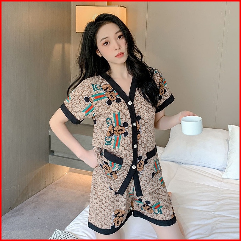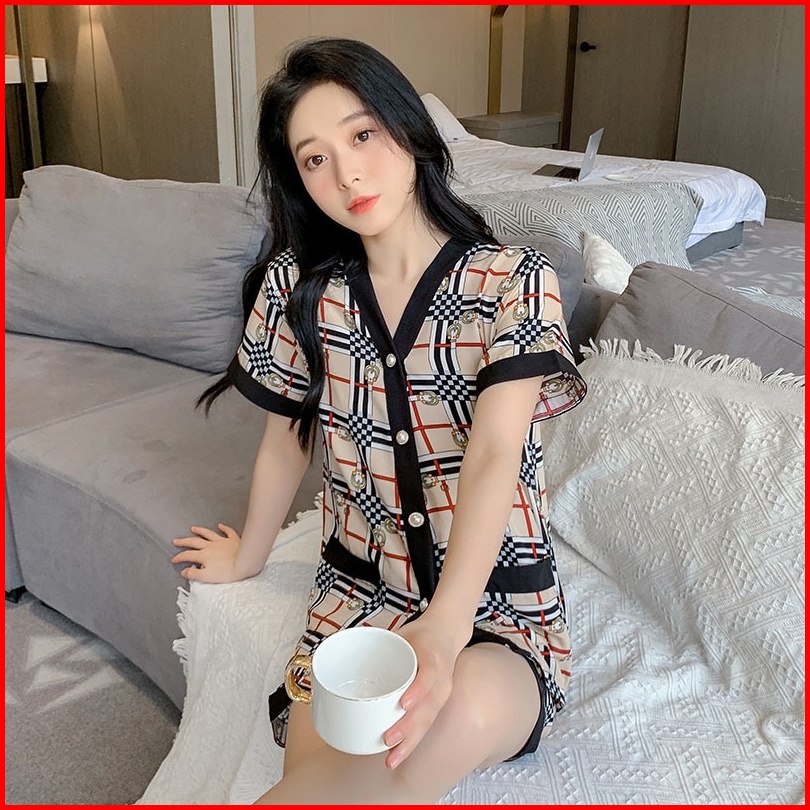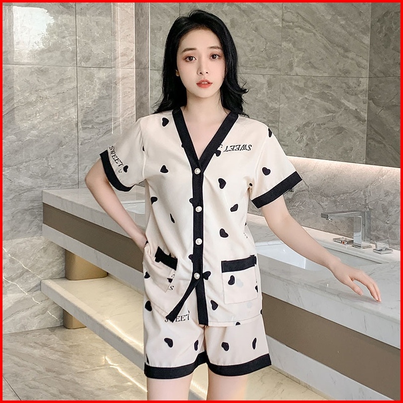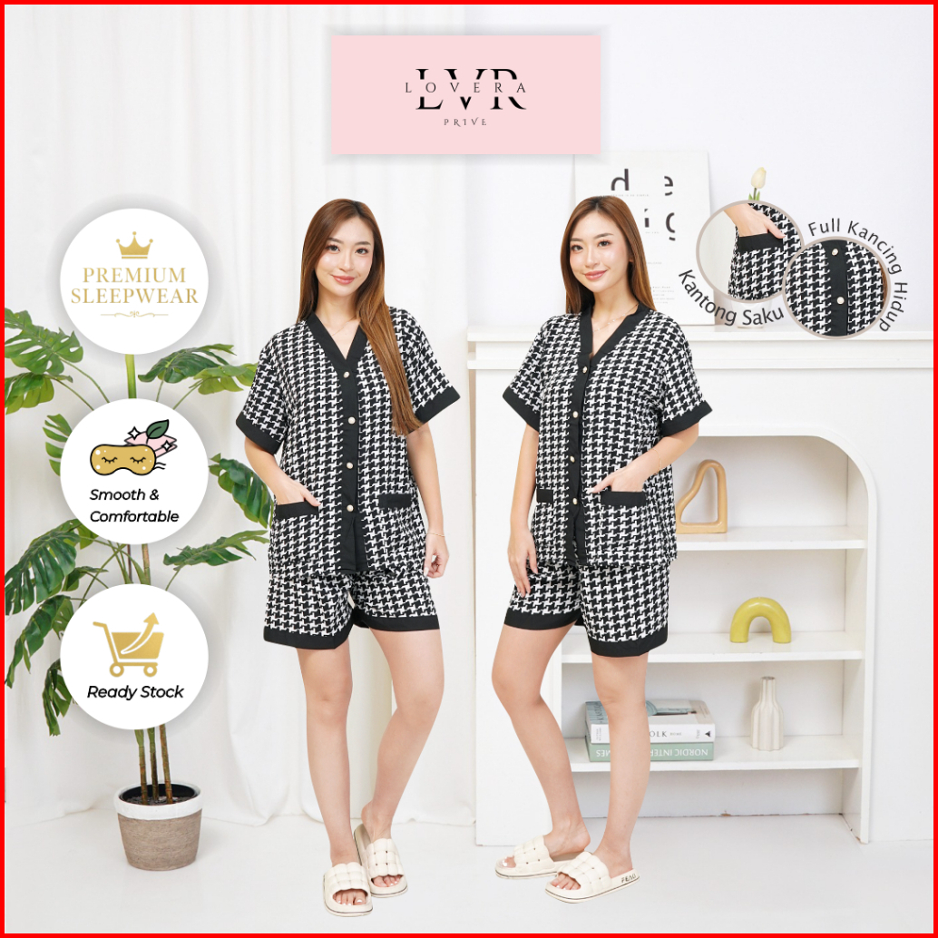 Lovera Piyama Wanita Dewasa Model Kancing Depan Mewah Hp Lengan Pendek Celana Pendek High Quality Sleepwear