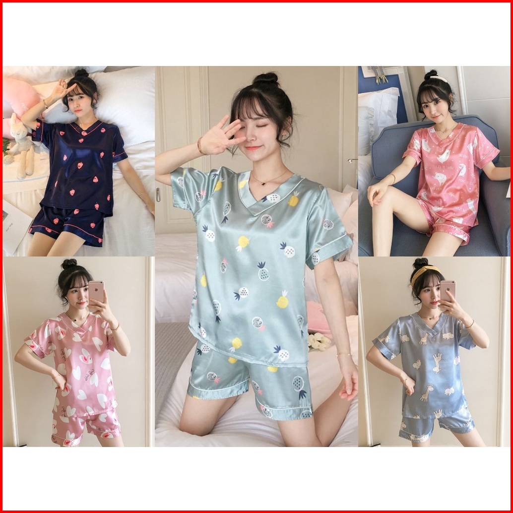 Lovera Baju Tidur Set Satin Hp Lengan Pendek Celana Pendek