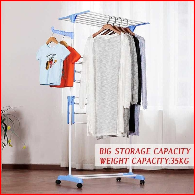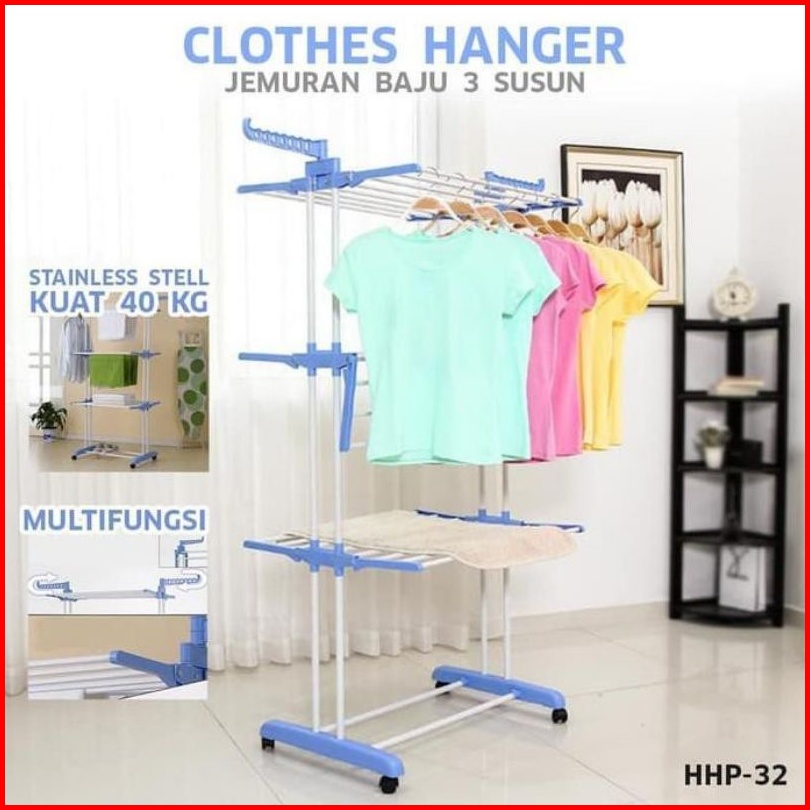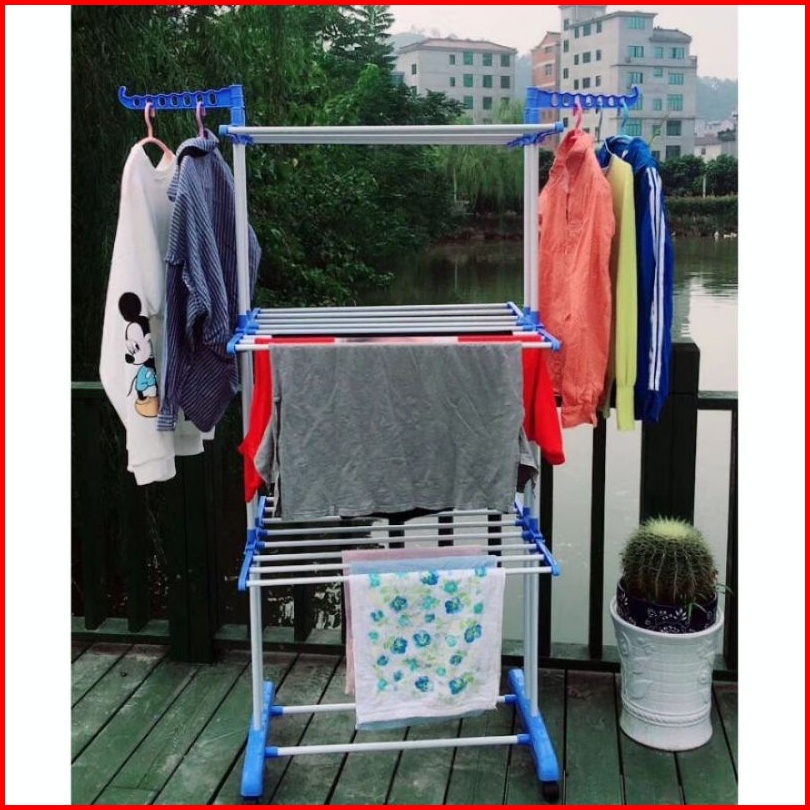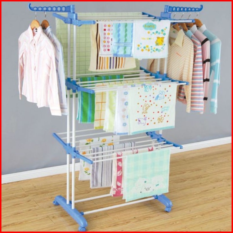 Celoviashop Jemuran Baju Pakaian 3 Susun Rak Gantungan Handuk Lipat Jemuran Dorong