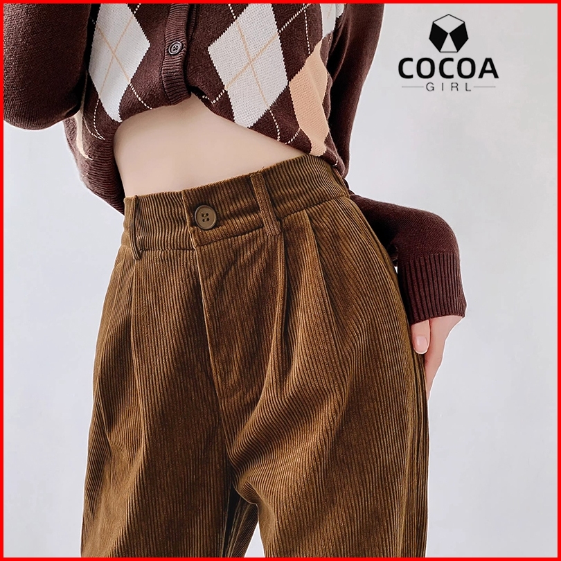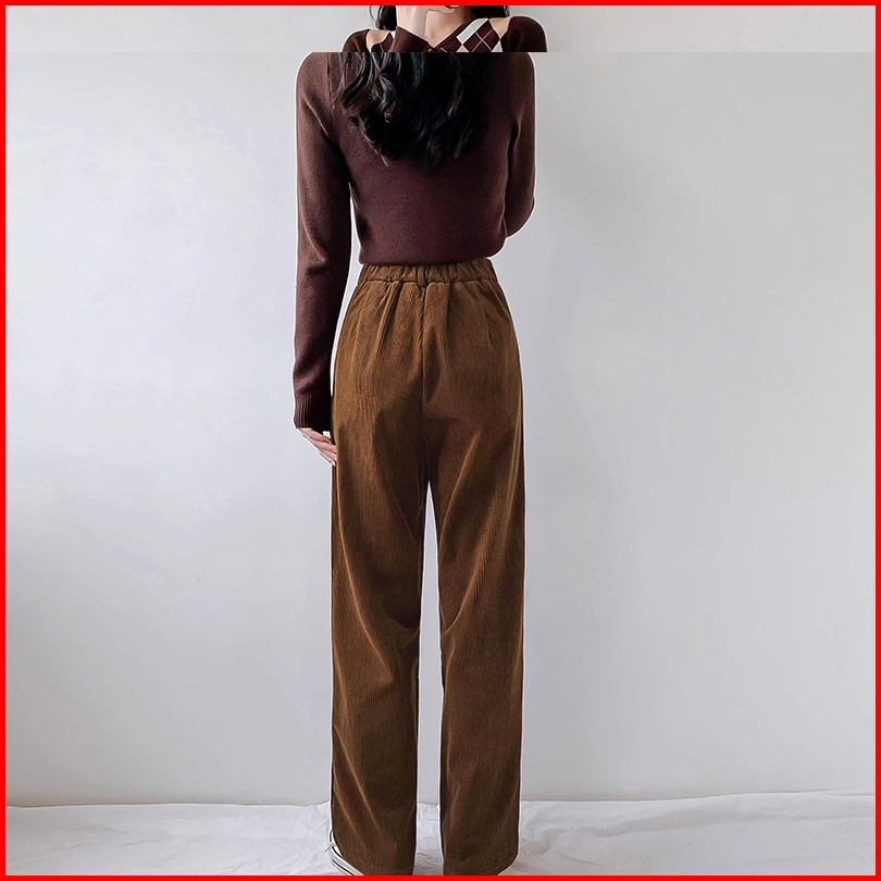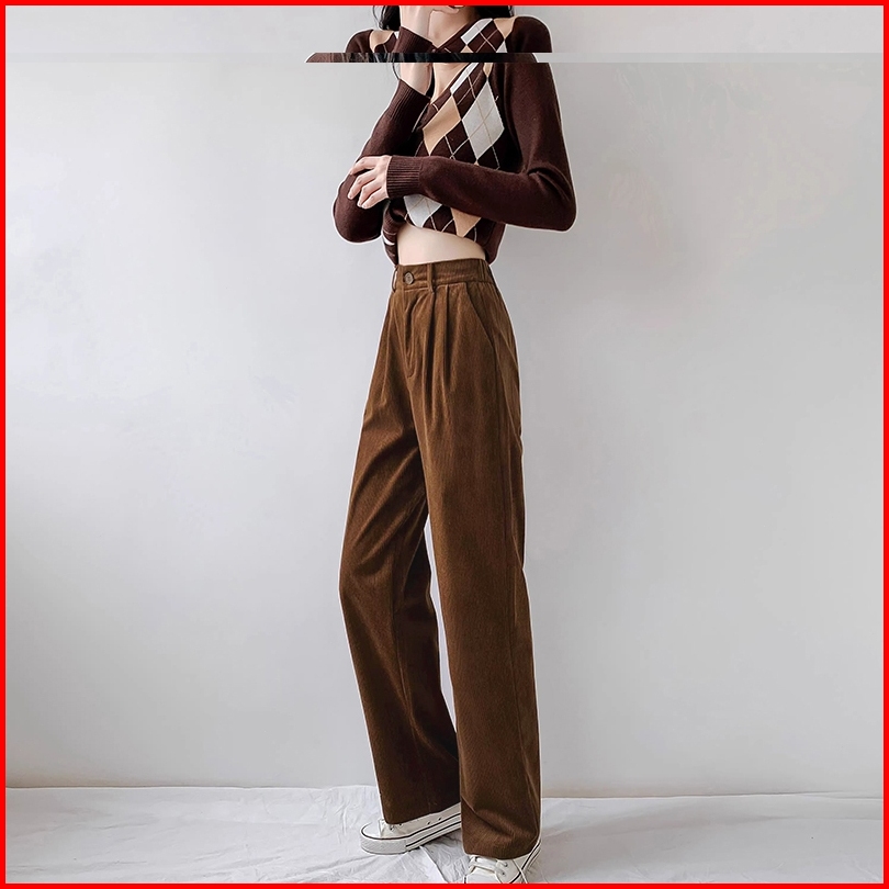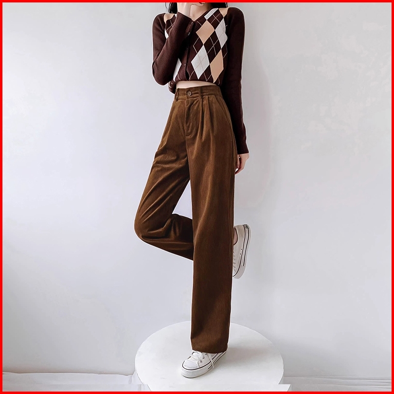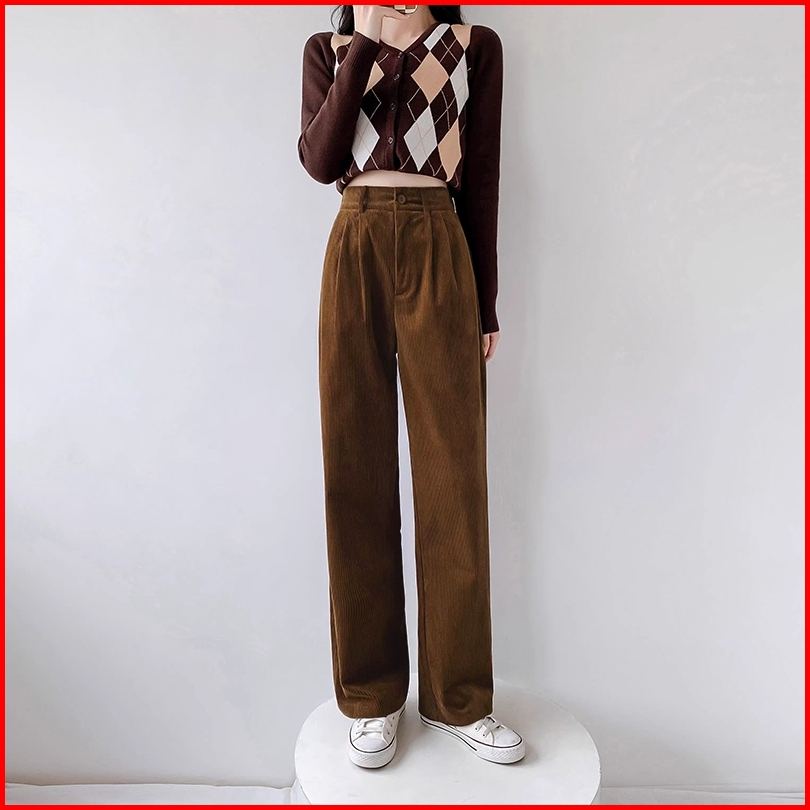 Celana Corduroy Wanita Celana Korean Style Celana Kulot Wanita Baggy Pants Coklat Highwaist Pants Straight Pants Celana