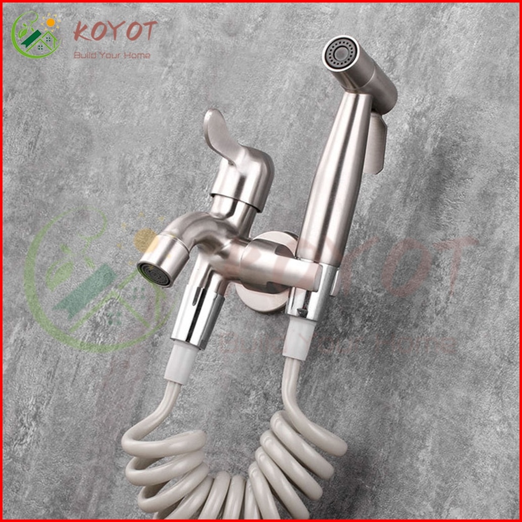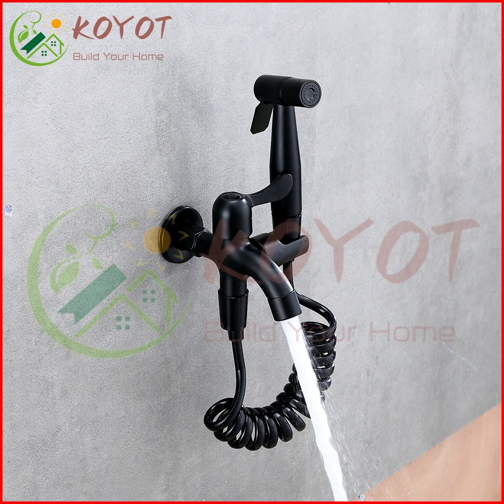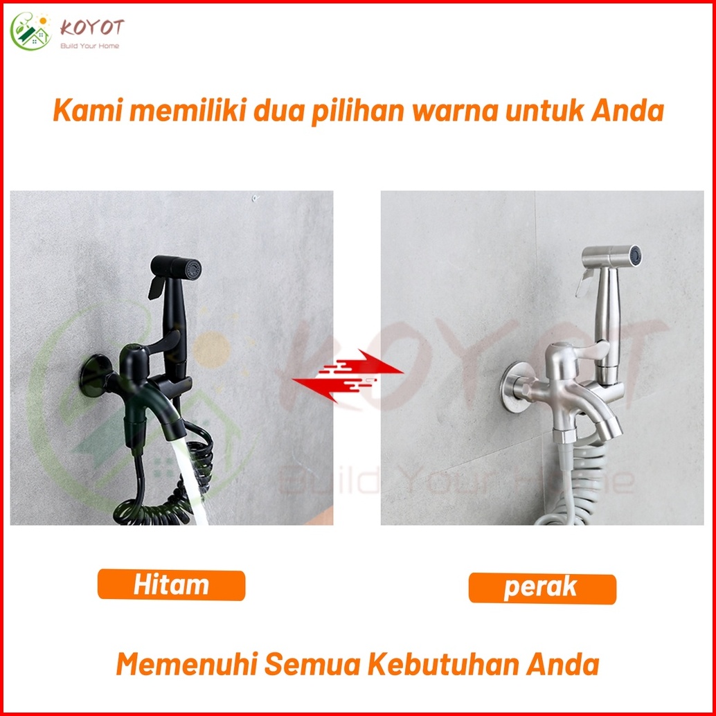 Koyot Kran Cabang Sus 304 Dan Jet Shower Toilet Hitam Matte 1 2 Inch Dengan Selang 1.5m Kran Air Double Kran Washing Mac