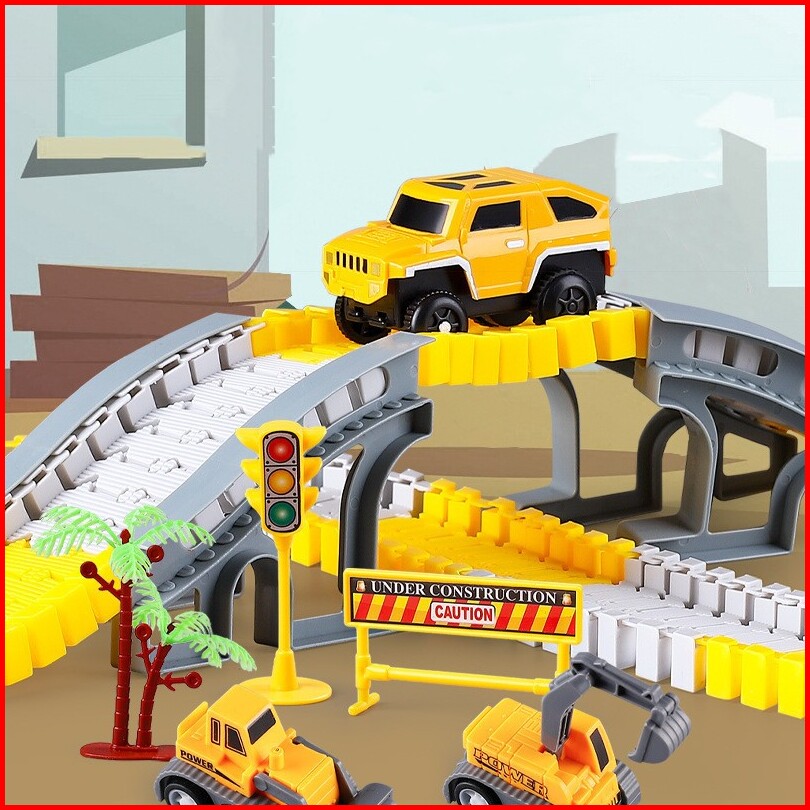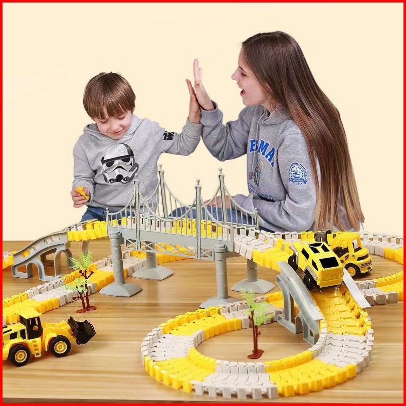 Gigitoy Mainan Mobil Rel 2 Mobil Hadiah Ulang Tahun Anak Laki Laki Mobil Anak Diy Rakitan Kereta Api Mainan