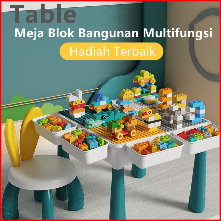 Multifungsi Meja Bangunan Belajar Anak Besar Set Building Block Table Rakitan Partikel Dan Kursi
