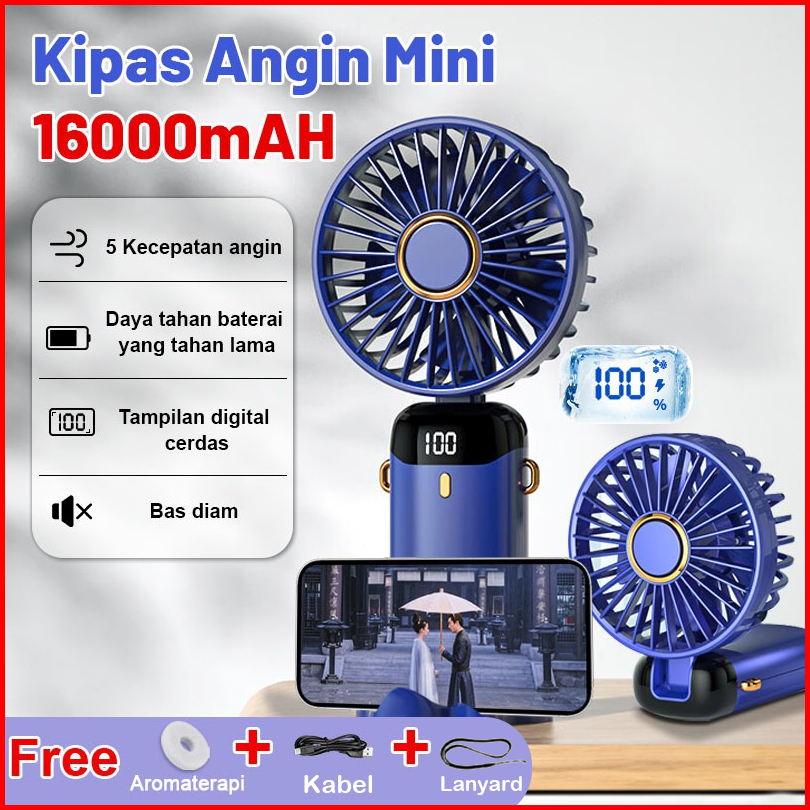 2024 Kipas Angin Mini Portable Usb 16000 Mah Kipas Lipat Leher 5-speed Wind Led Display