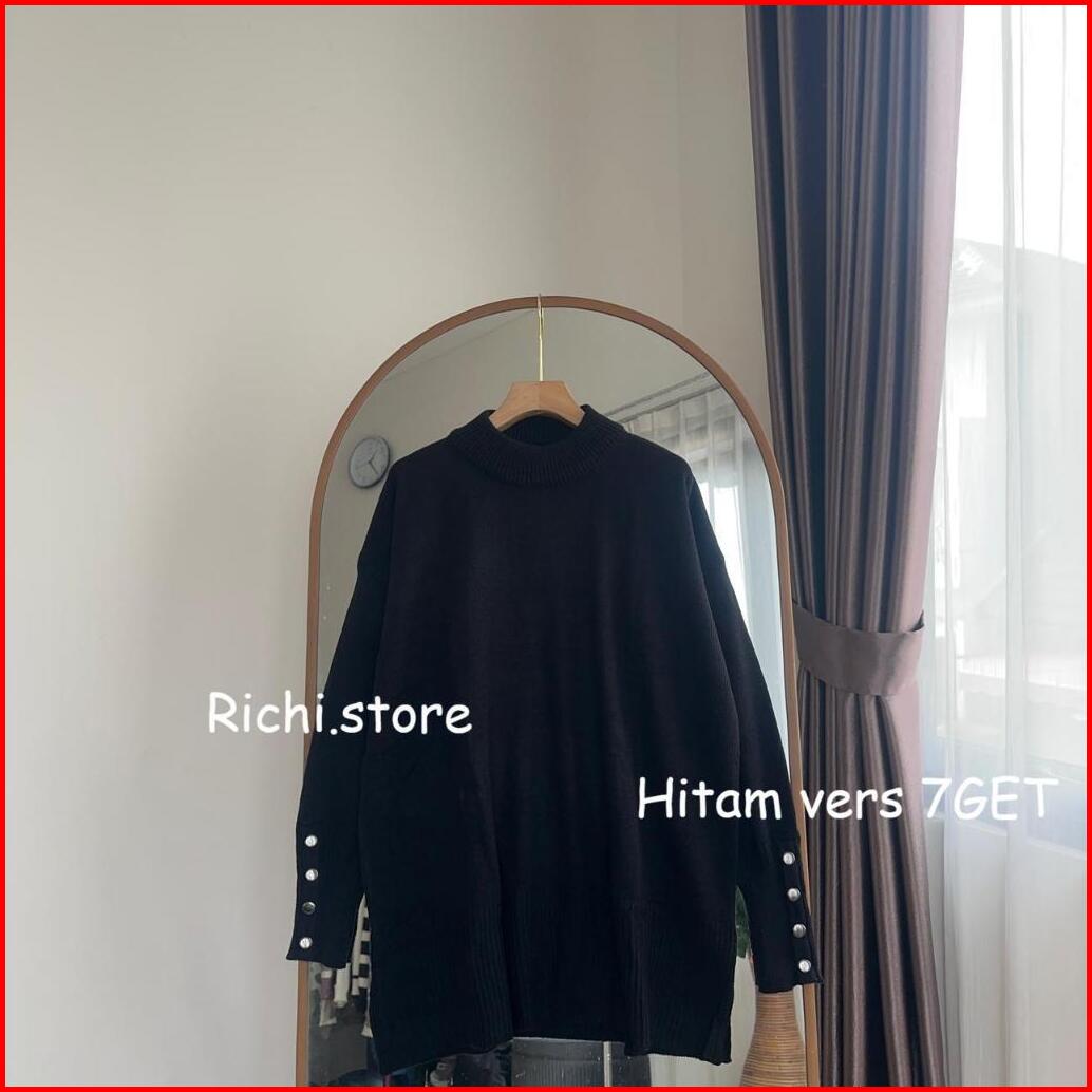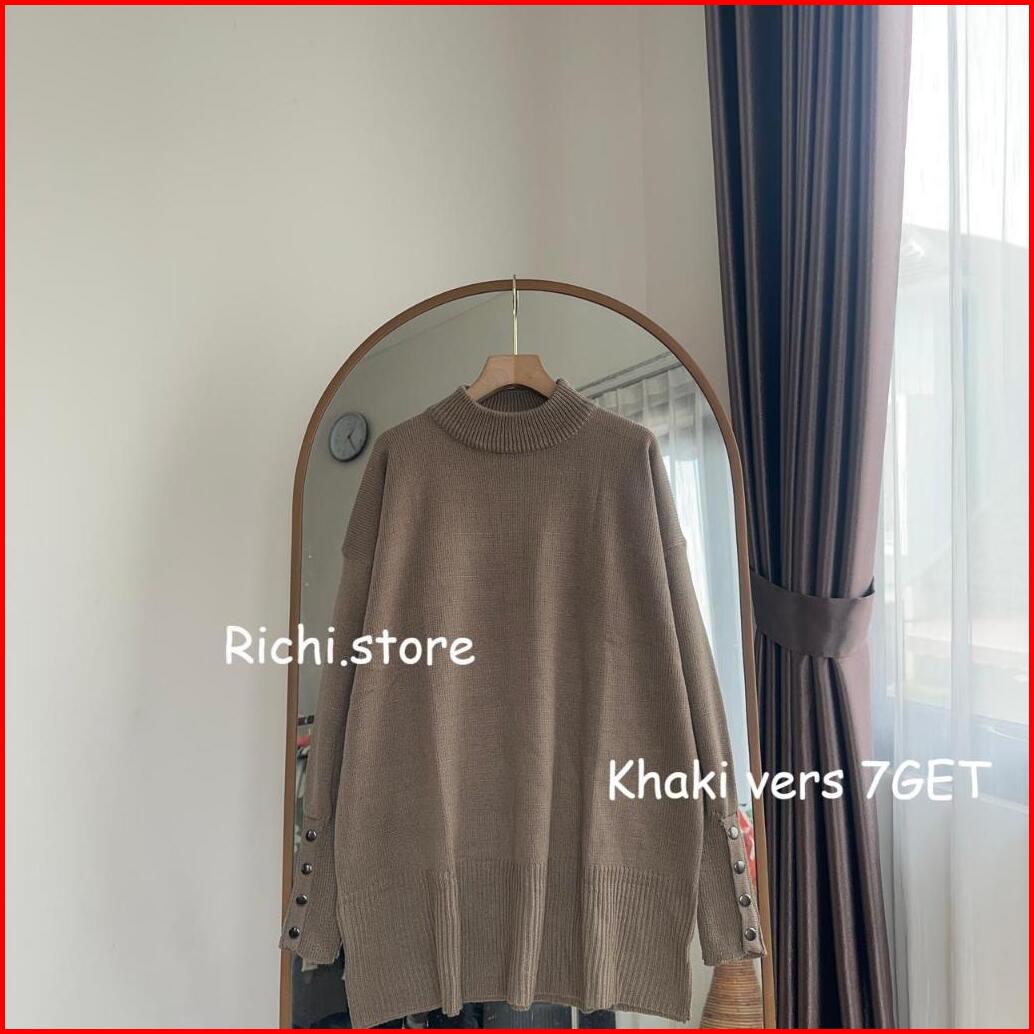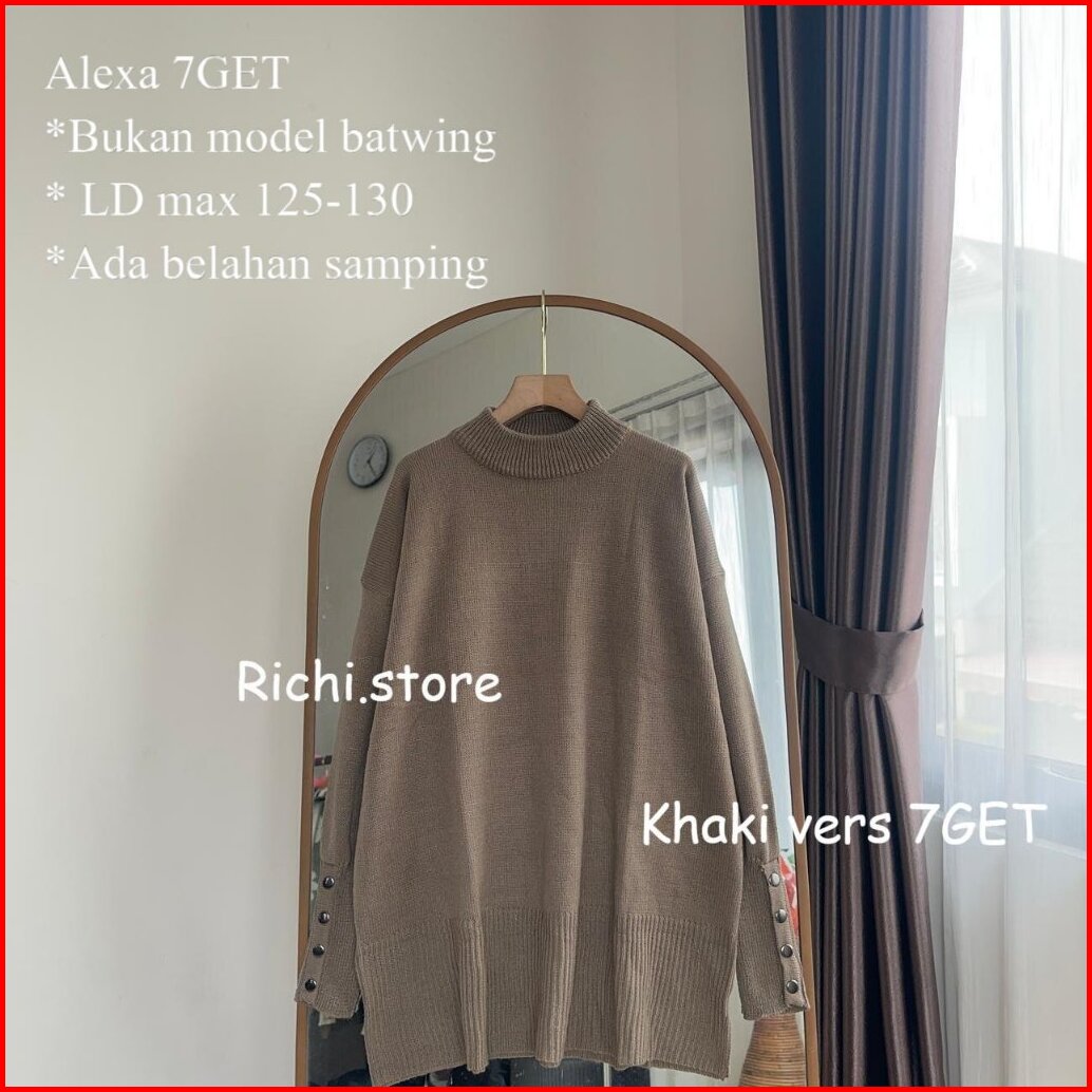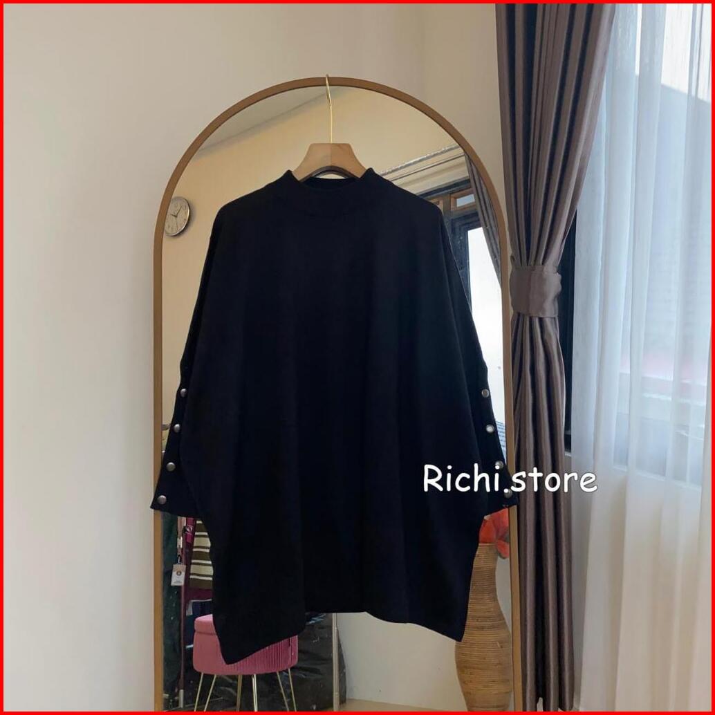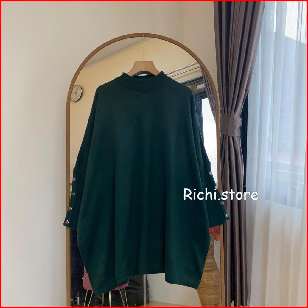 Alexa Batwing Rajut Atasan Wanita Turtleneck Lengan Kancing