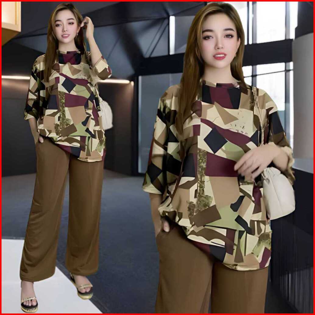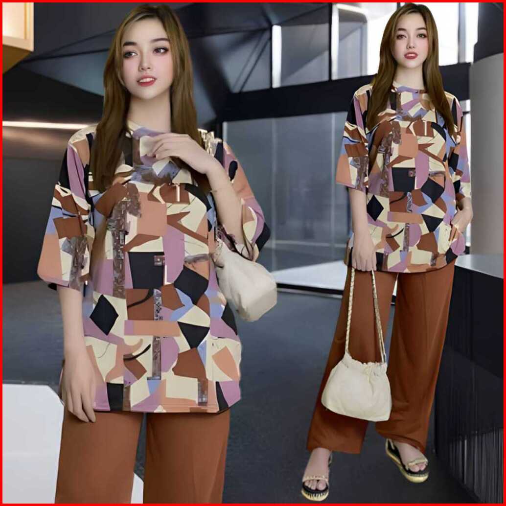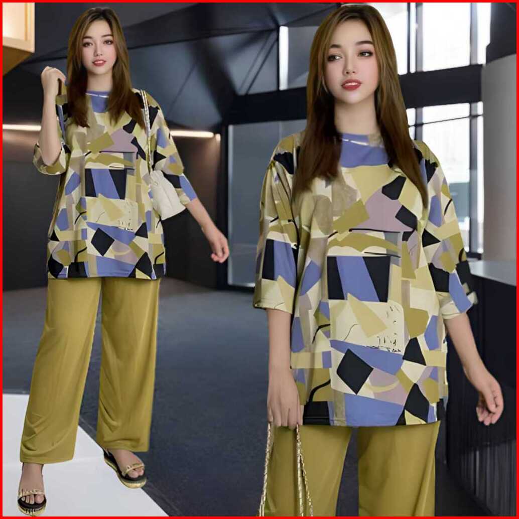 Zifara Setelan Wanita Ld 120 Celana Lurus Dan Atasan Oval Belahan Kiri Dan Kanan Oversize Wanita Celana Lurus Karet Kant