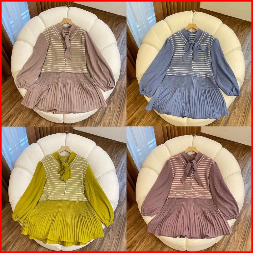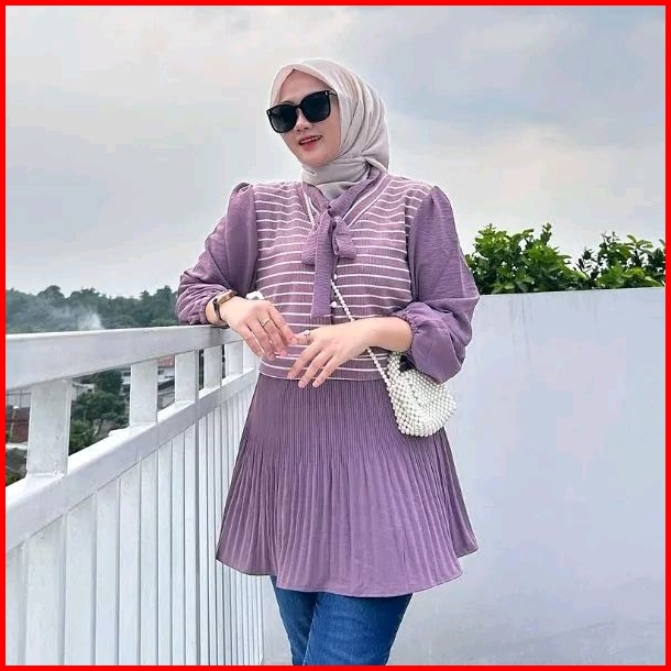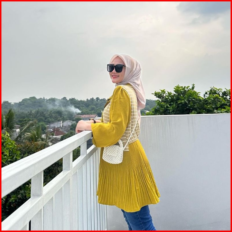 Sesya Blouse Tali Crincle Kombinasi Knit