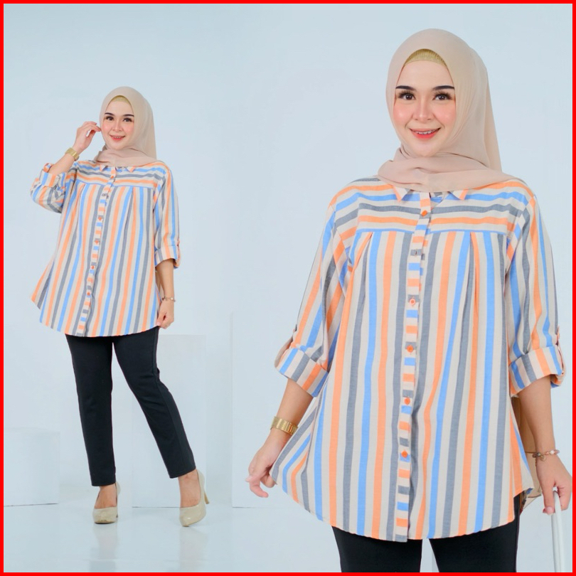 Kemeja Garis Jumbo Ld 120 Real Pict Geser Terbaru
