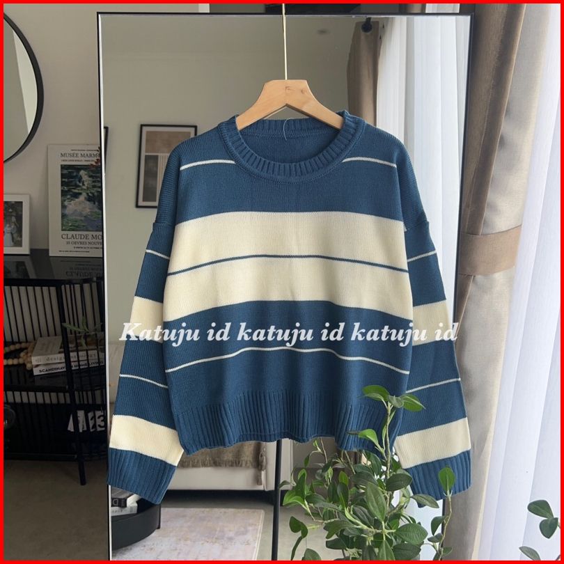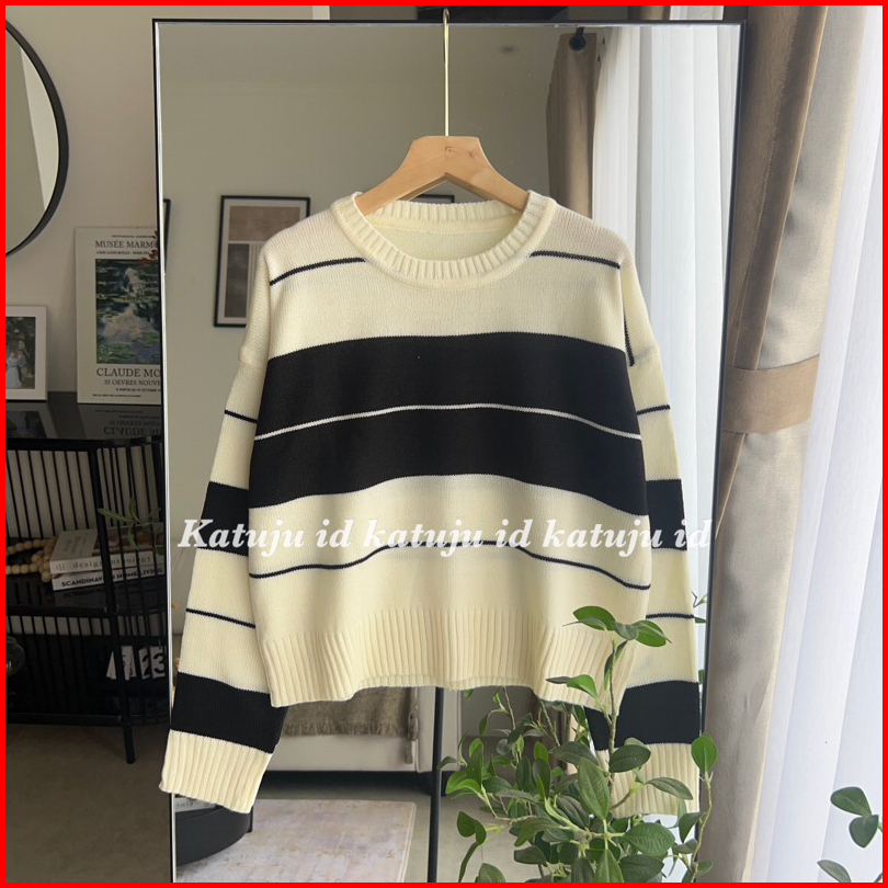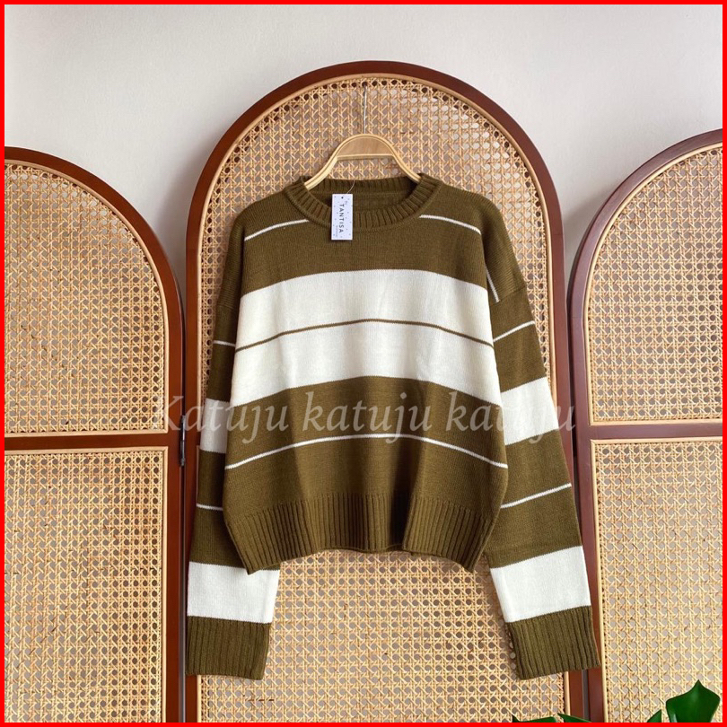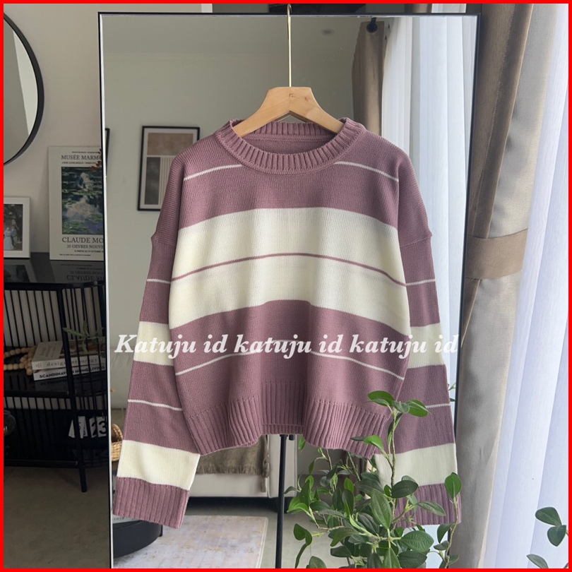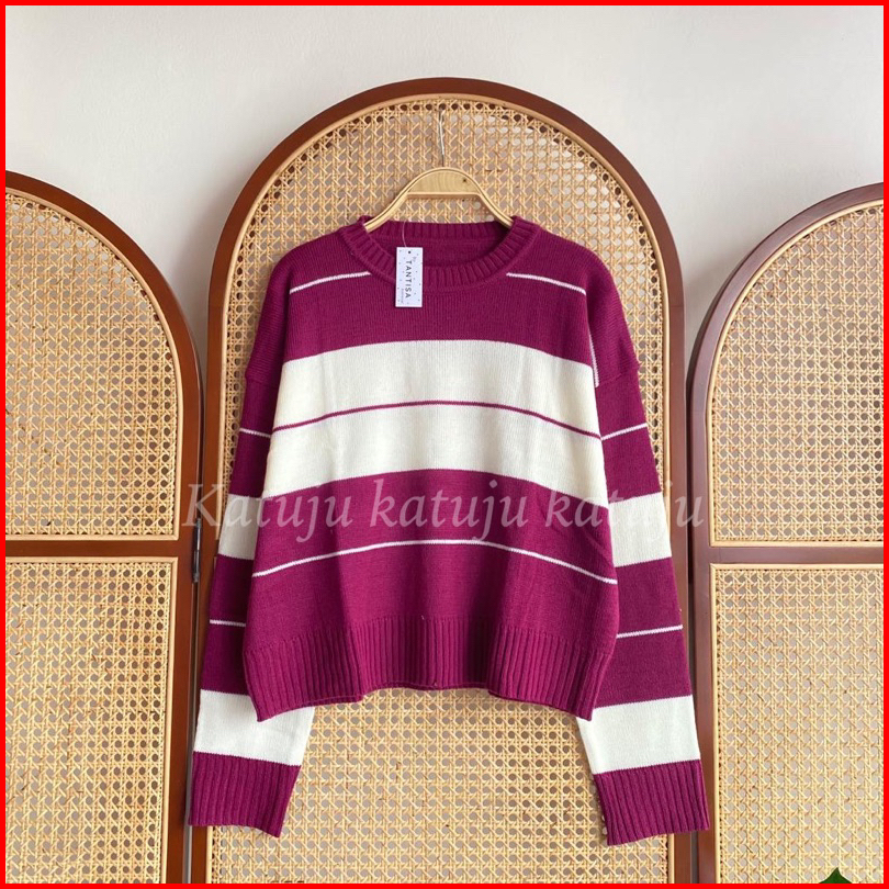 Atasan Rajut Motif Garis Rinsyi