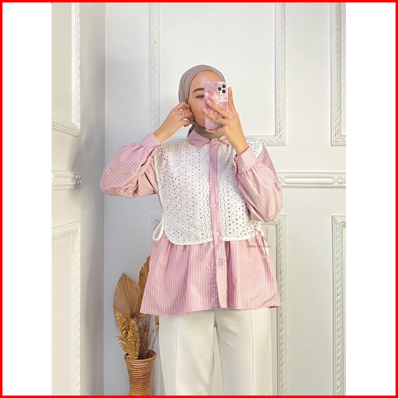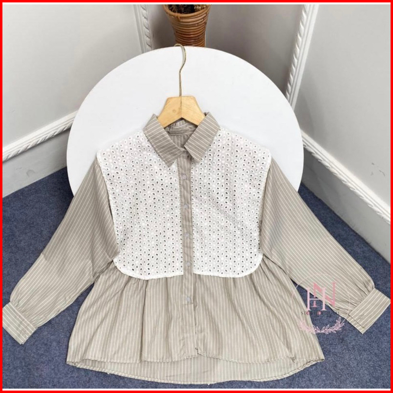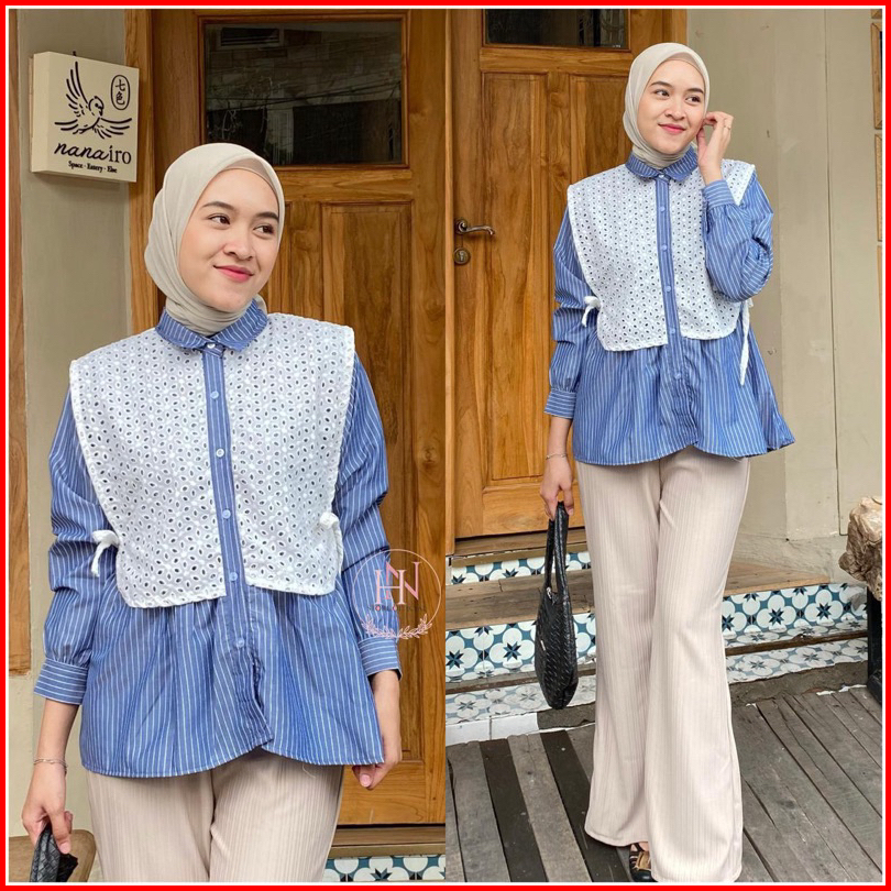 Serina Kemeja Katun Mix Broklat Kemaja Casual Wanita